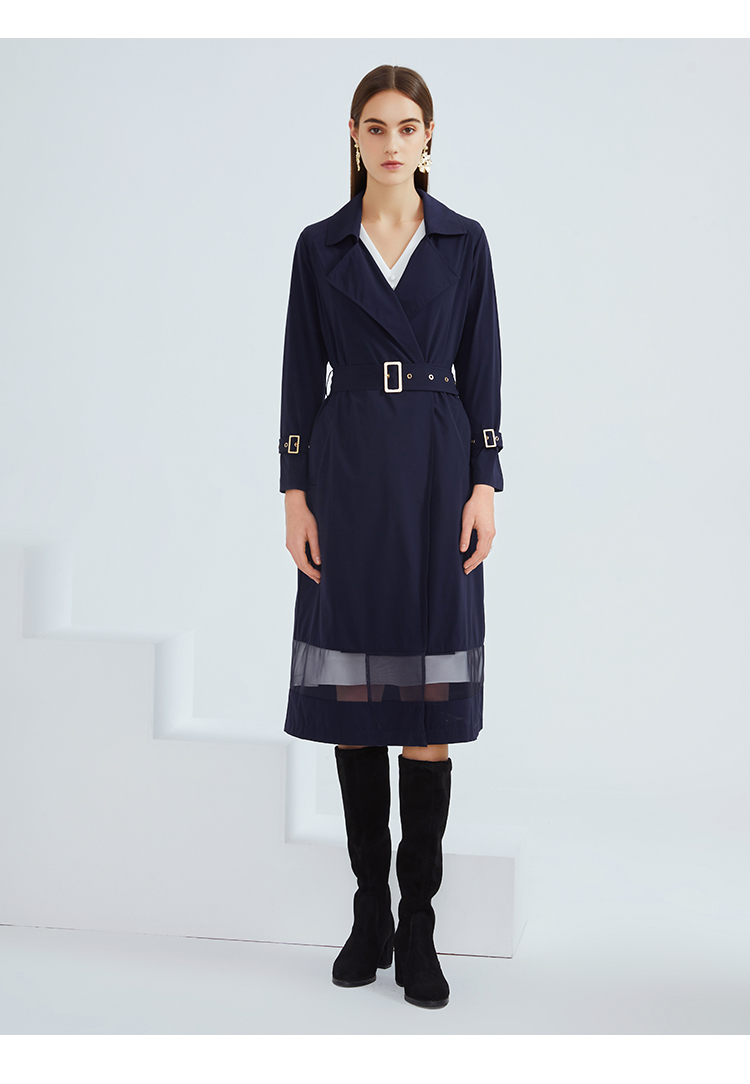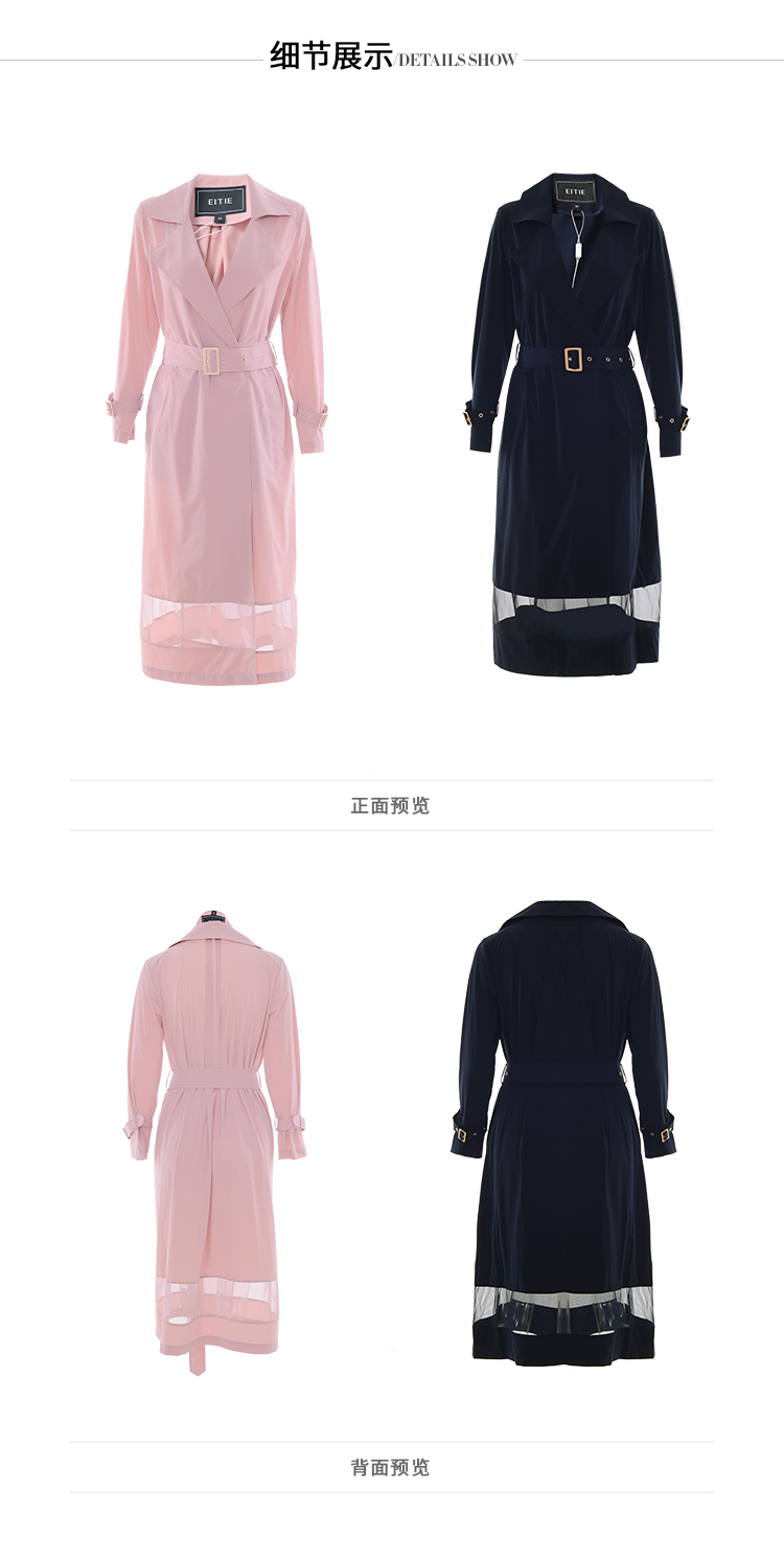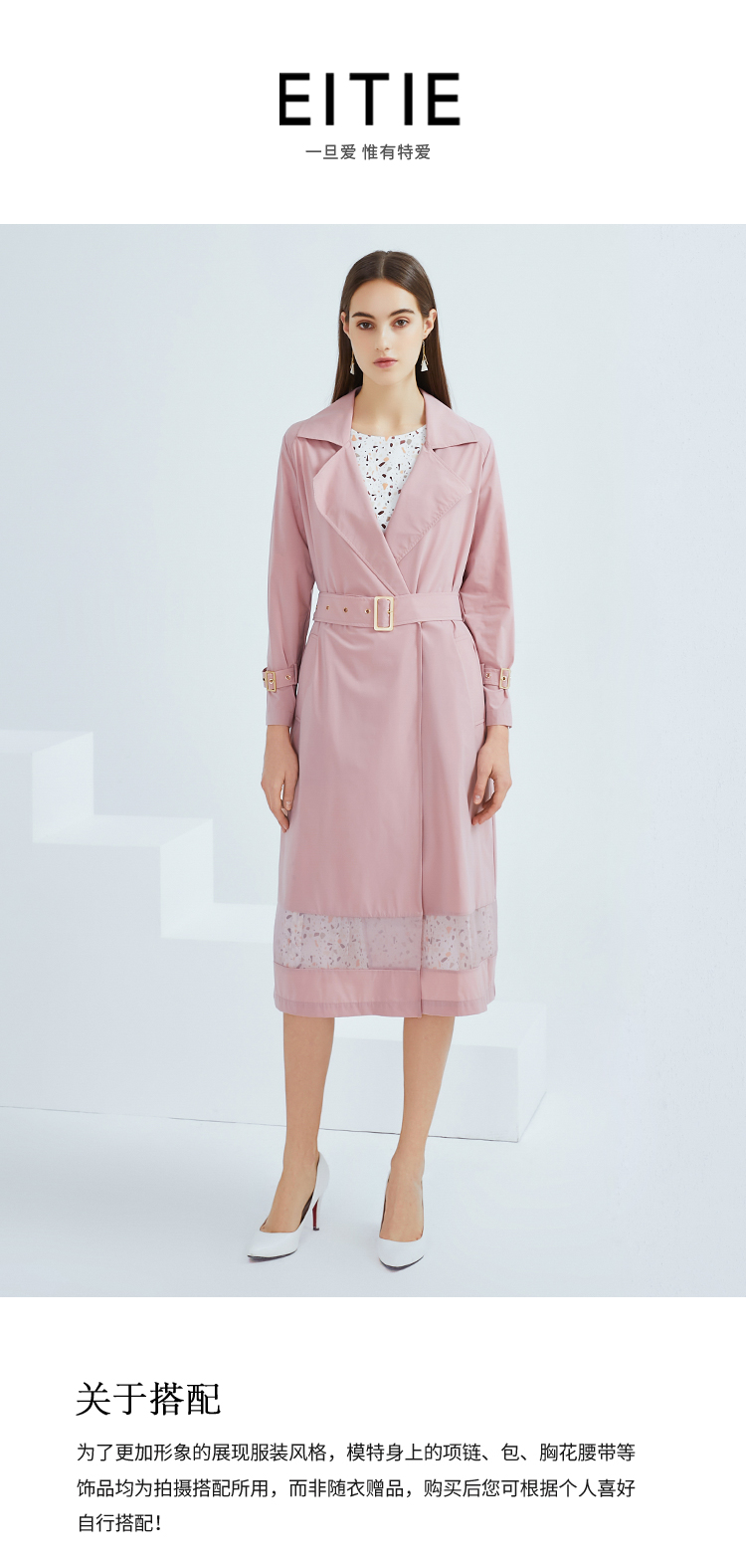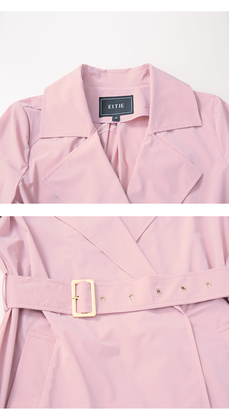 EITIE爱特爱女装秋季气质翻驳领挺括双排扣收腰优雅风衣外套D1904333