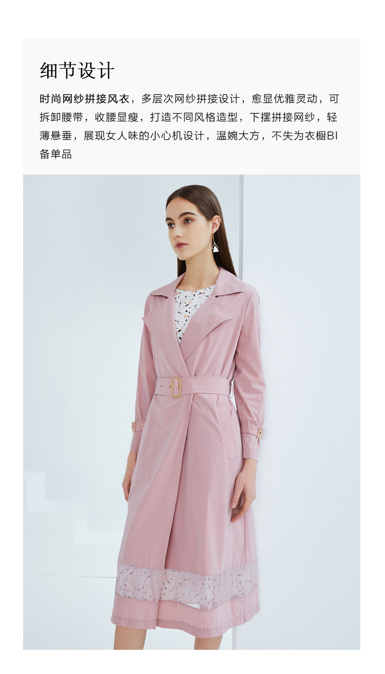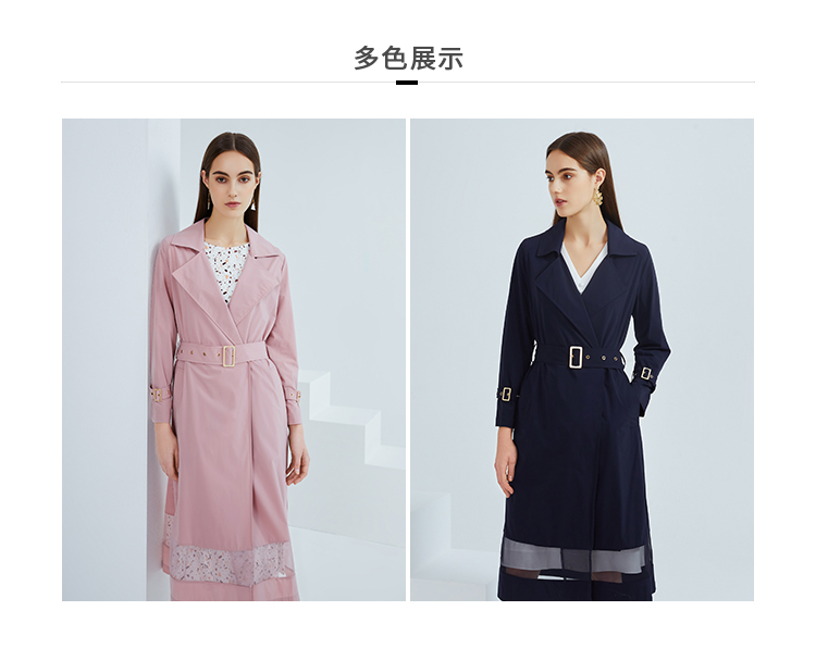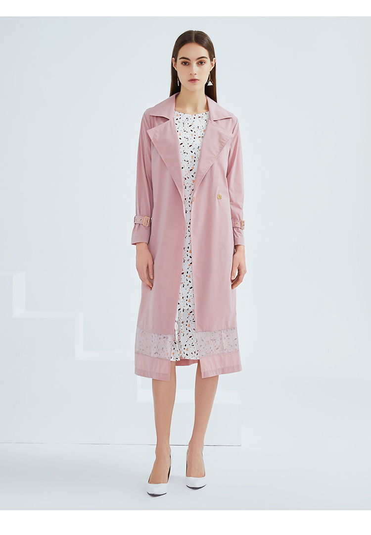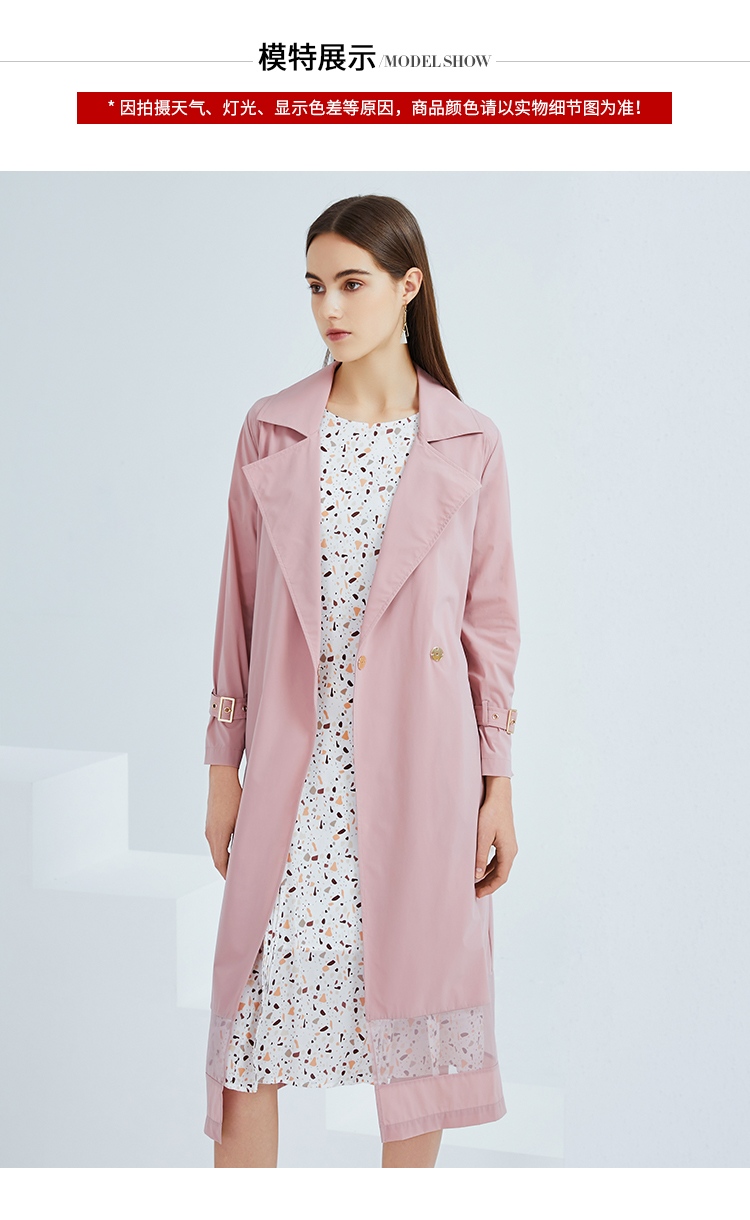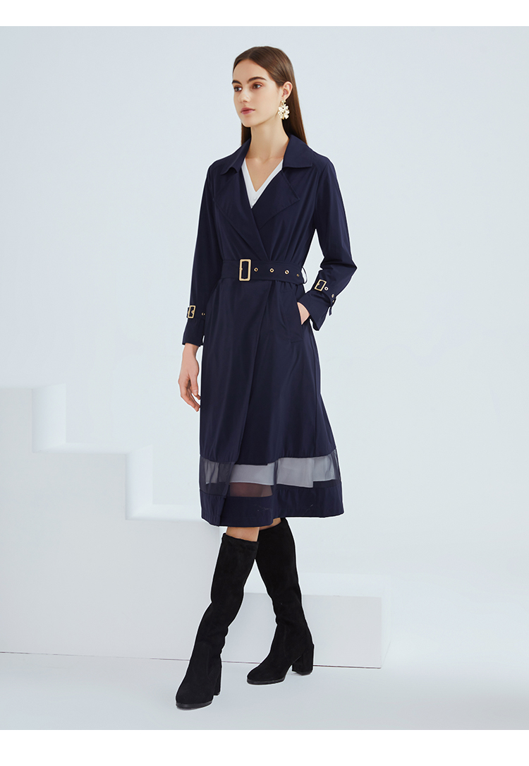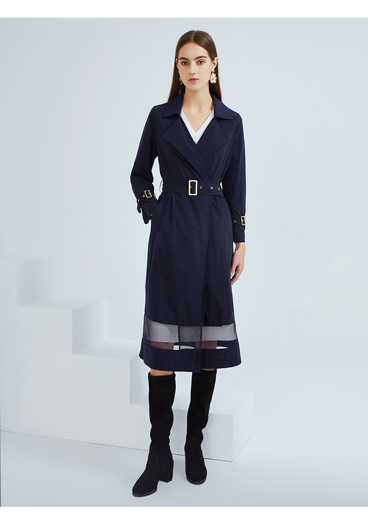 EITIE爱特爱女装秋季气质翻驳领挺括双排扣收腰优雅风衣外套D1904333