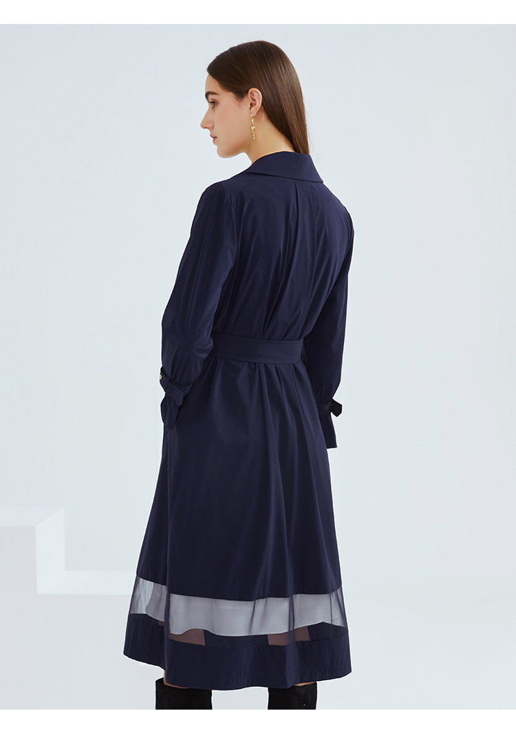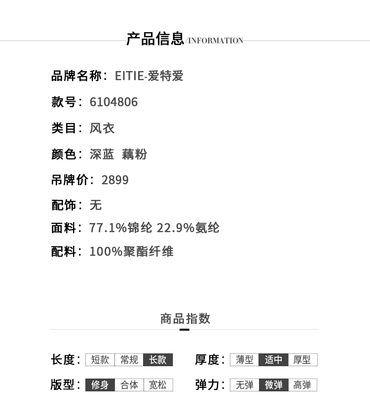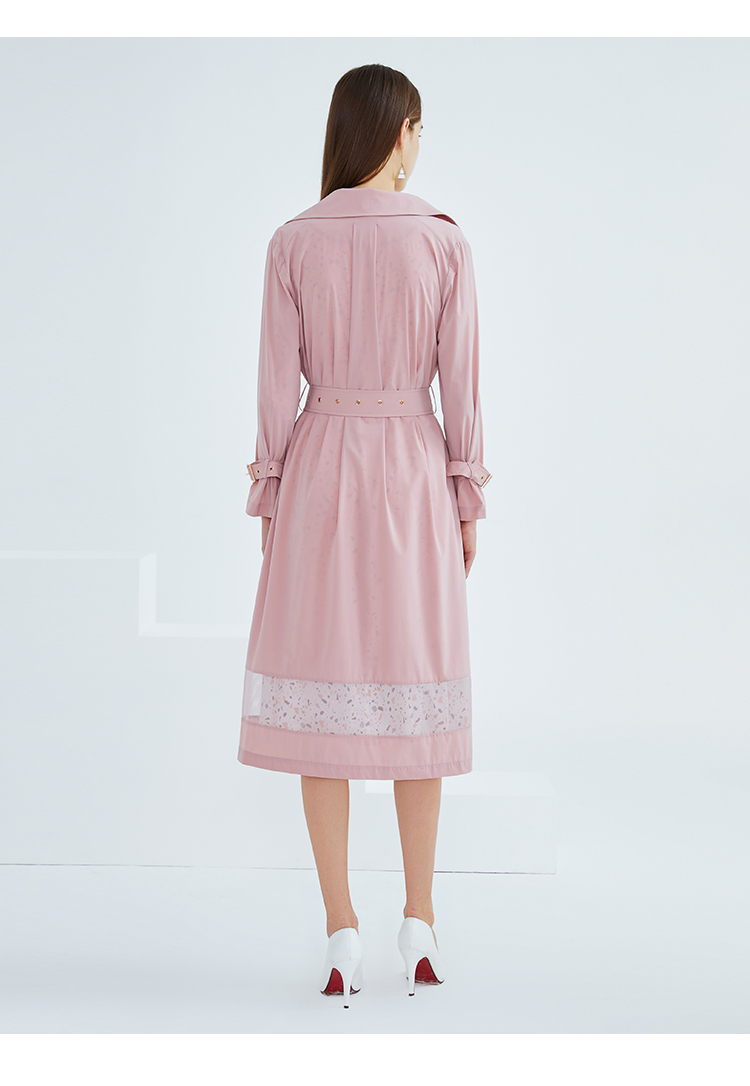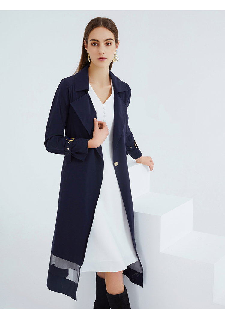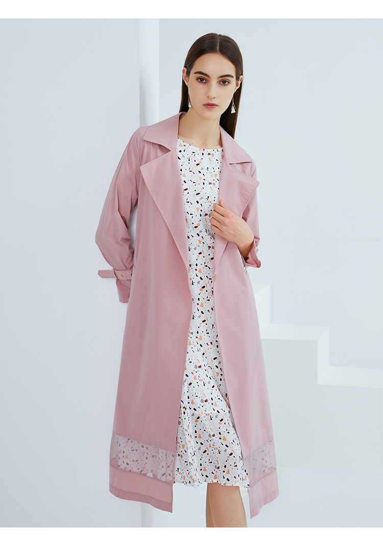 EITIE爱特爱女装秋季气质翻驳领挺括双排扣收腰优雅风衣外套D1904333