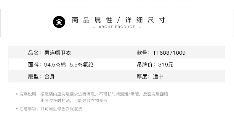 卡尔美运动休闲卫衣秋冬连帽字母上衣男士棉套头衫
