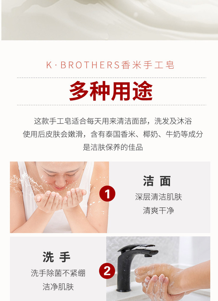 【20天白一度】泰国手工大米香皂植物精油皂 全身可用