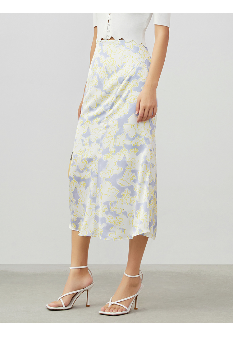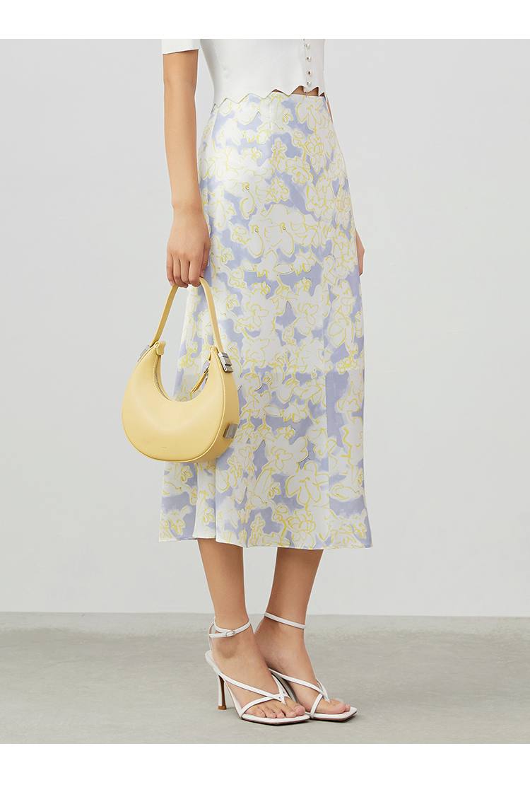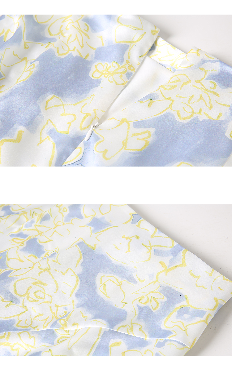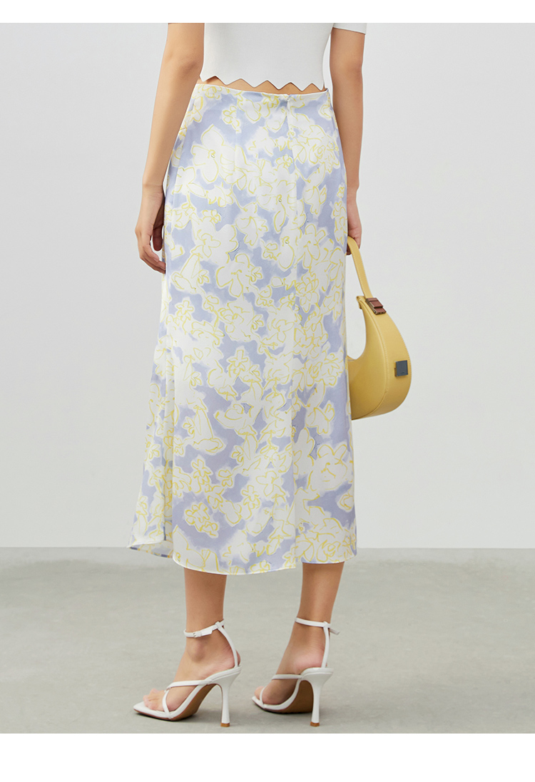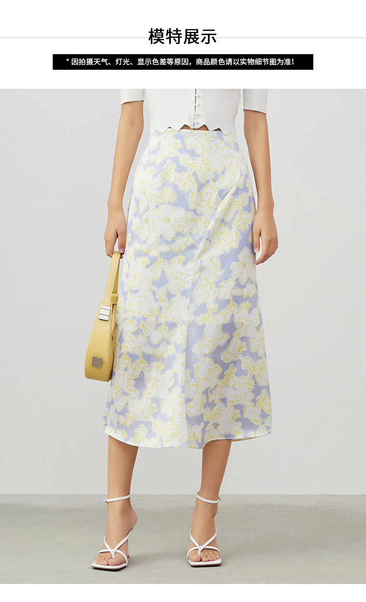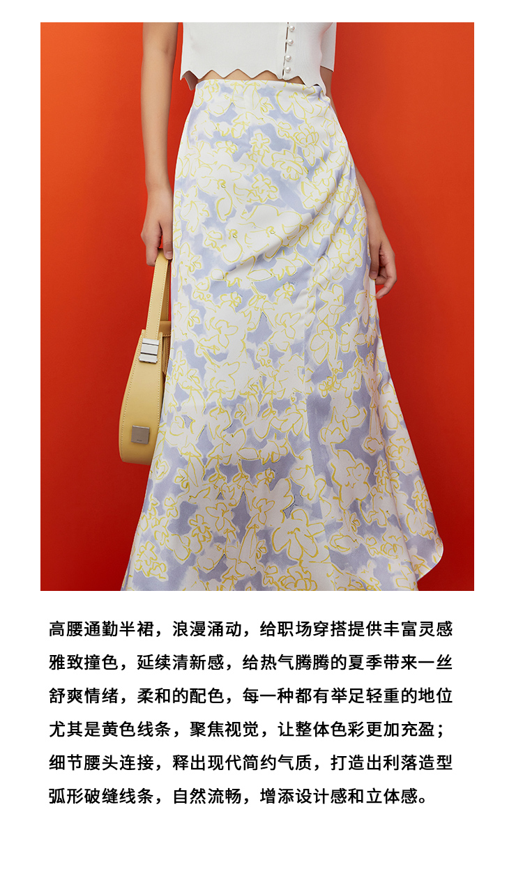 VIMAGE纬漫纪夏季新款印花小清新A字裙过膝半身裙女V1706314