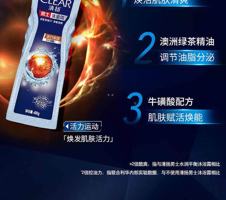 清扬男士活力运动沐浴露400ml