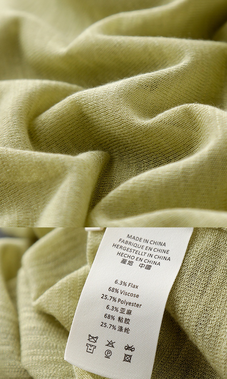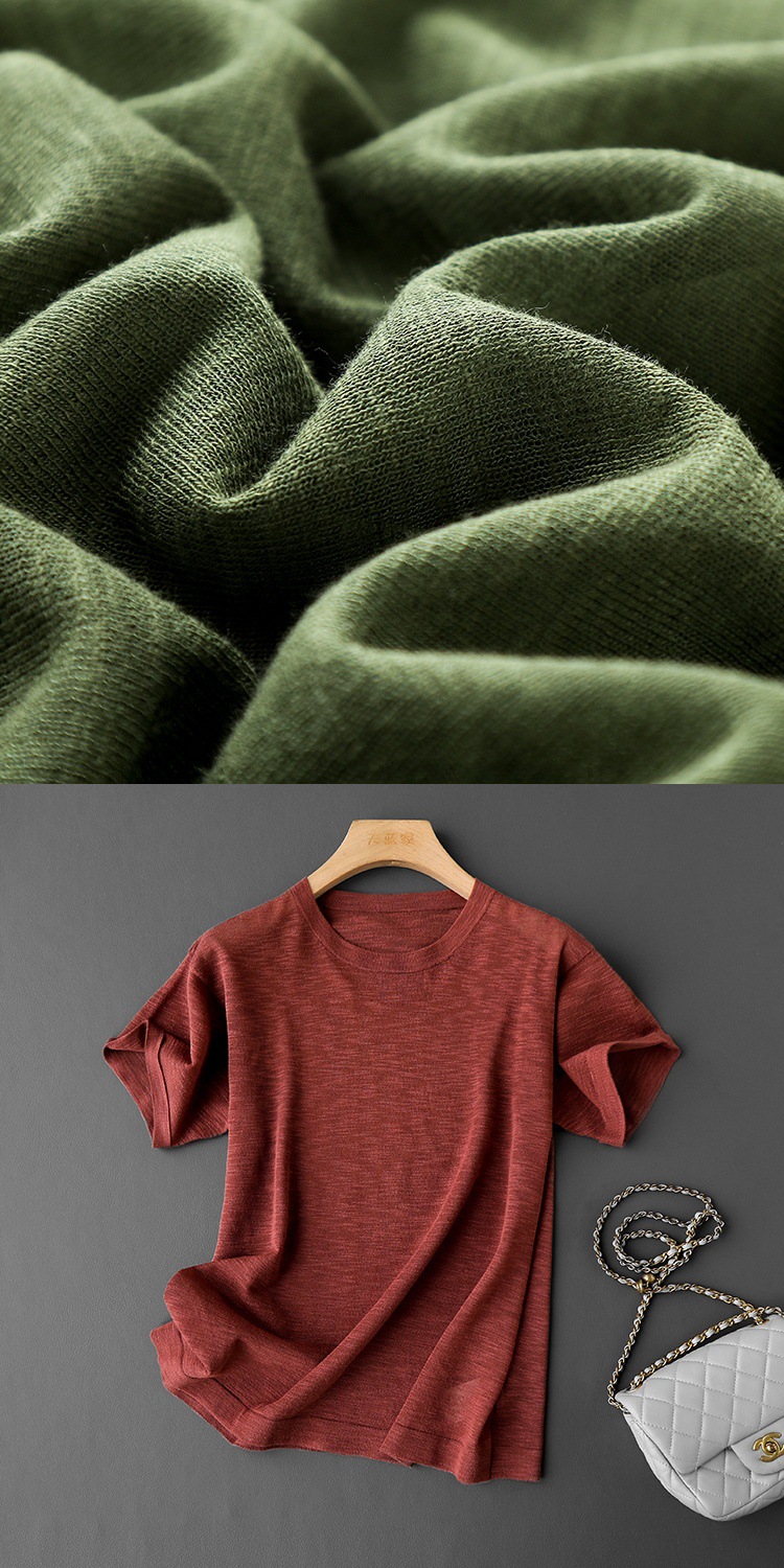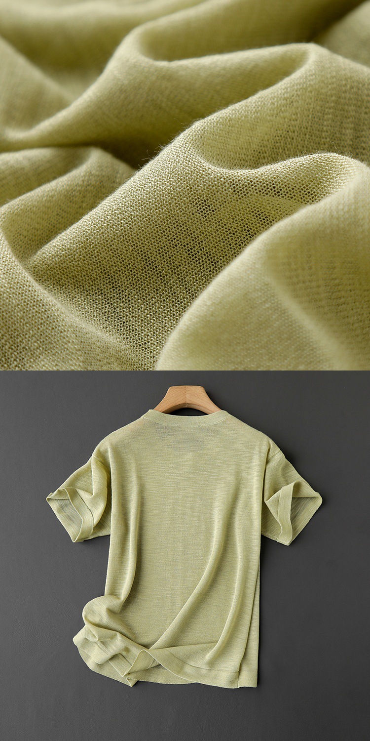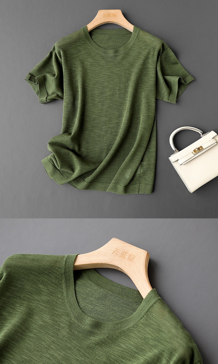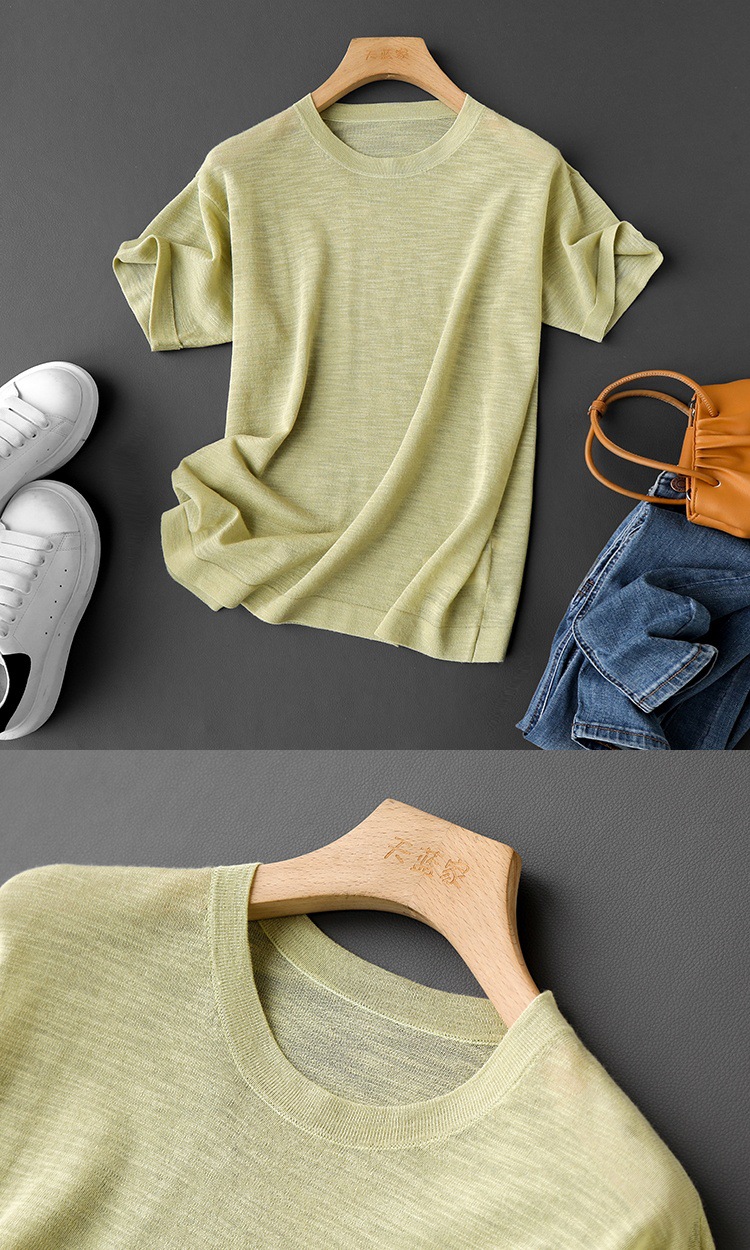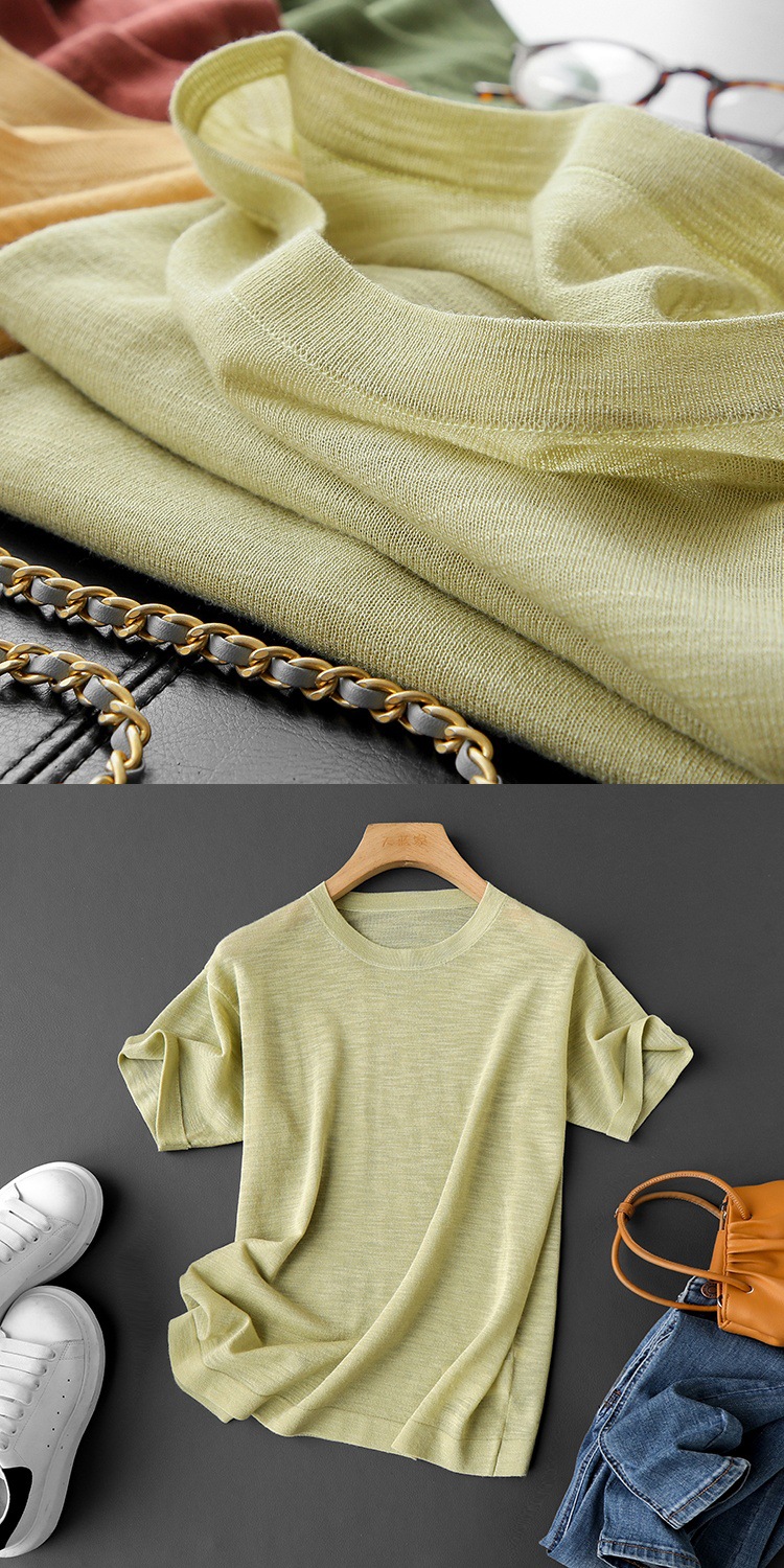 丁摩 CHAO赞针织衫!薄款亚麻天丝圆领短袖针织T恤女夏纯色抹茶绿上衣5ZF- 26215