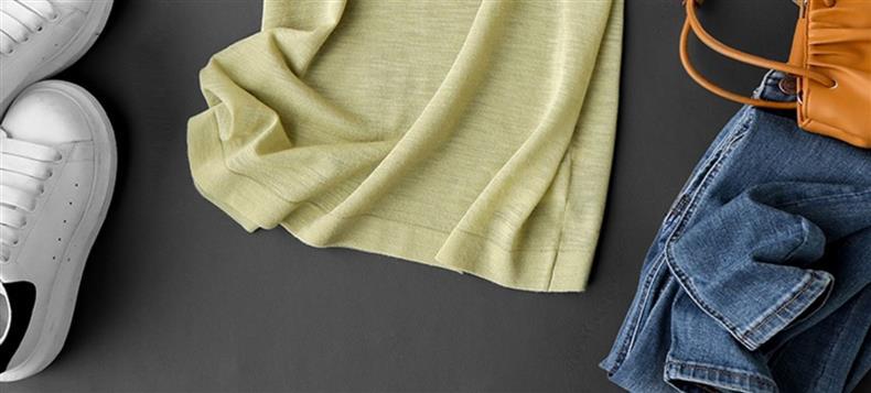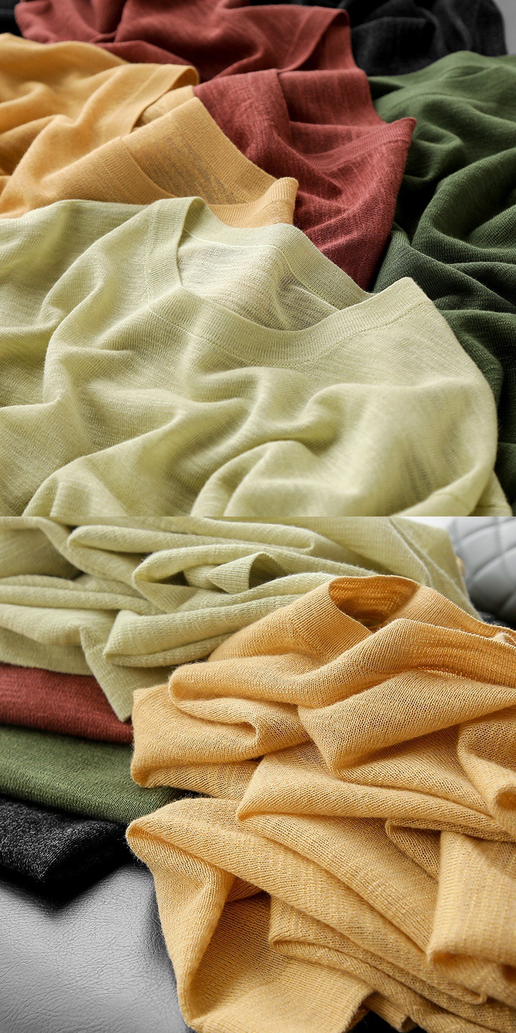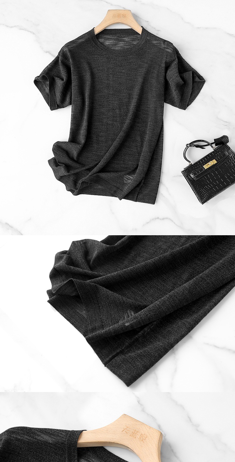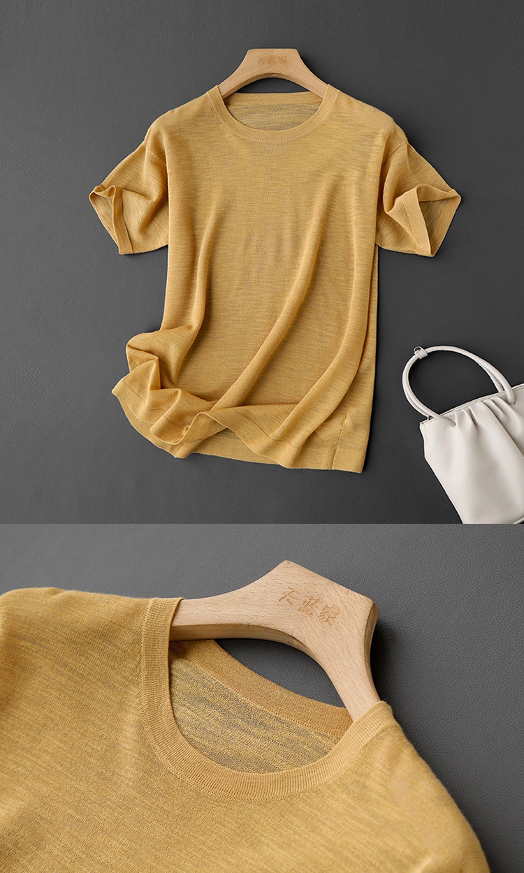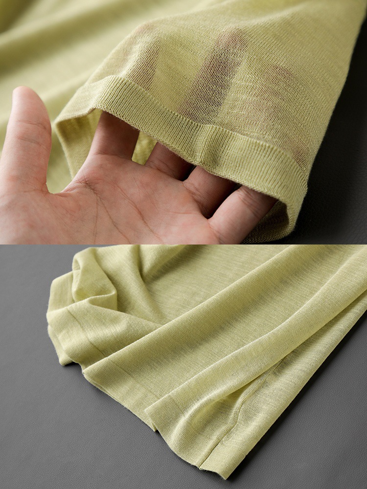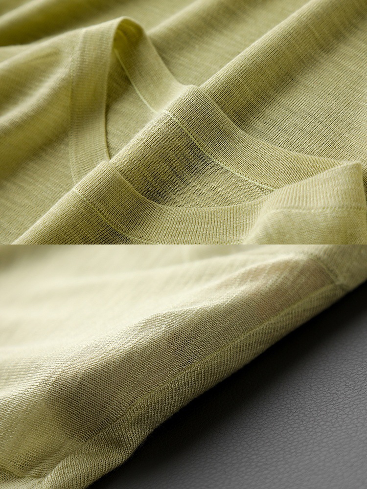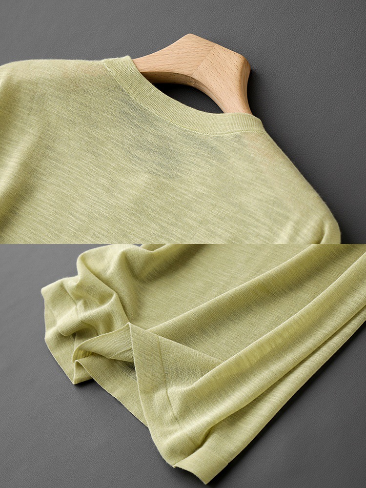 丁摩 CHAO赞针织衫!薄款亚麻天丝圆领短袖针织T恤女夏纯色抹茶绿上衣5ZF- 26215
