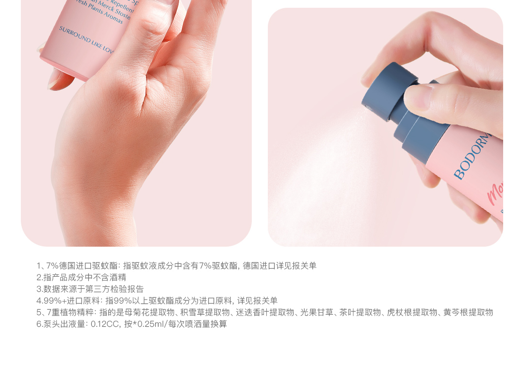 【品牌直发】贝德美bodorme驱蚊喷雾防蚊喷雾驱蚊水随身花露水