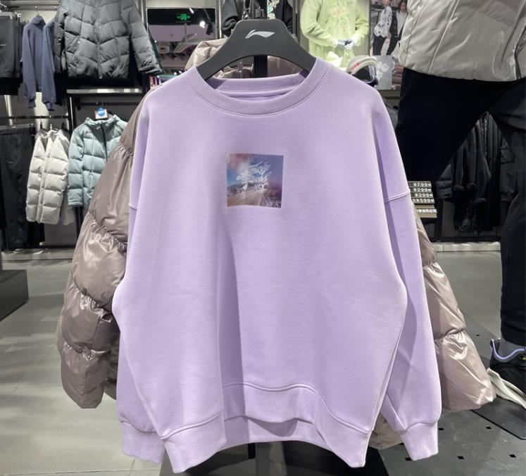 【XL断码】李宁卫衣女2022春季新款圆领休闲宽松针织运动套头衫 AWDS042【库存有限,如无货将做退款,介意慎拍】