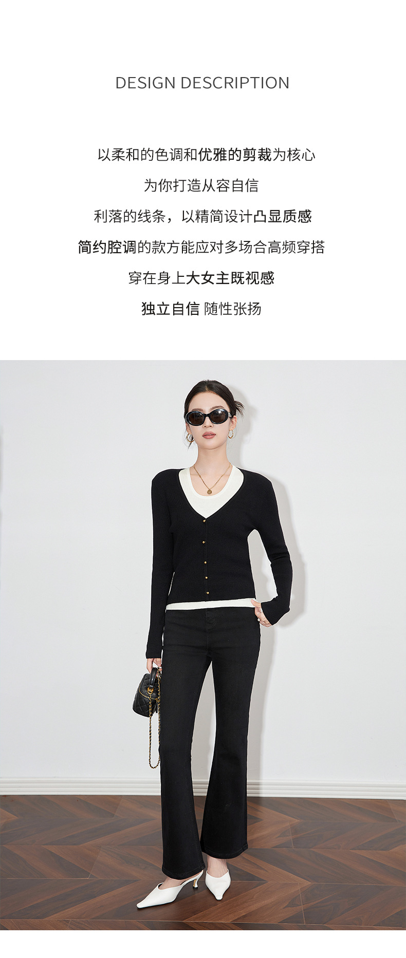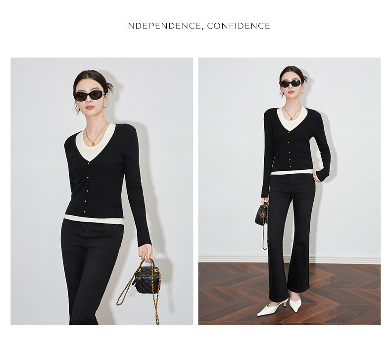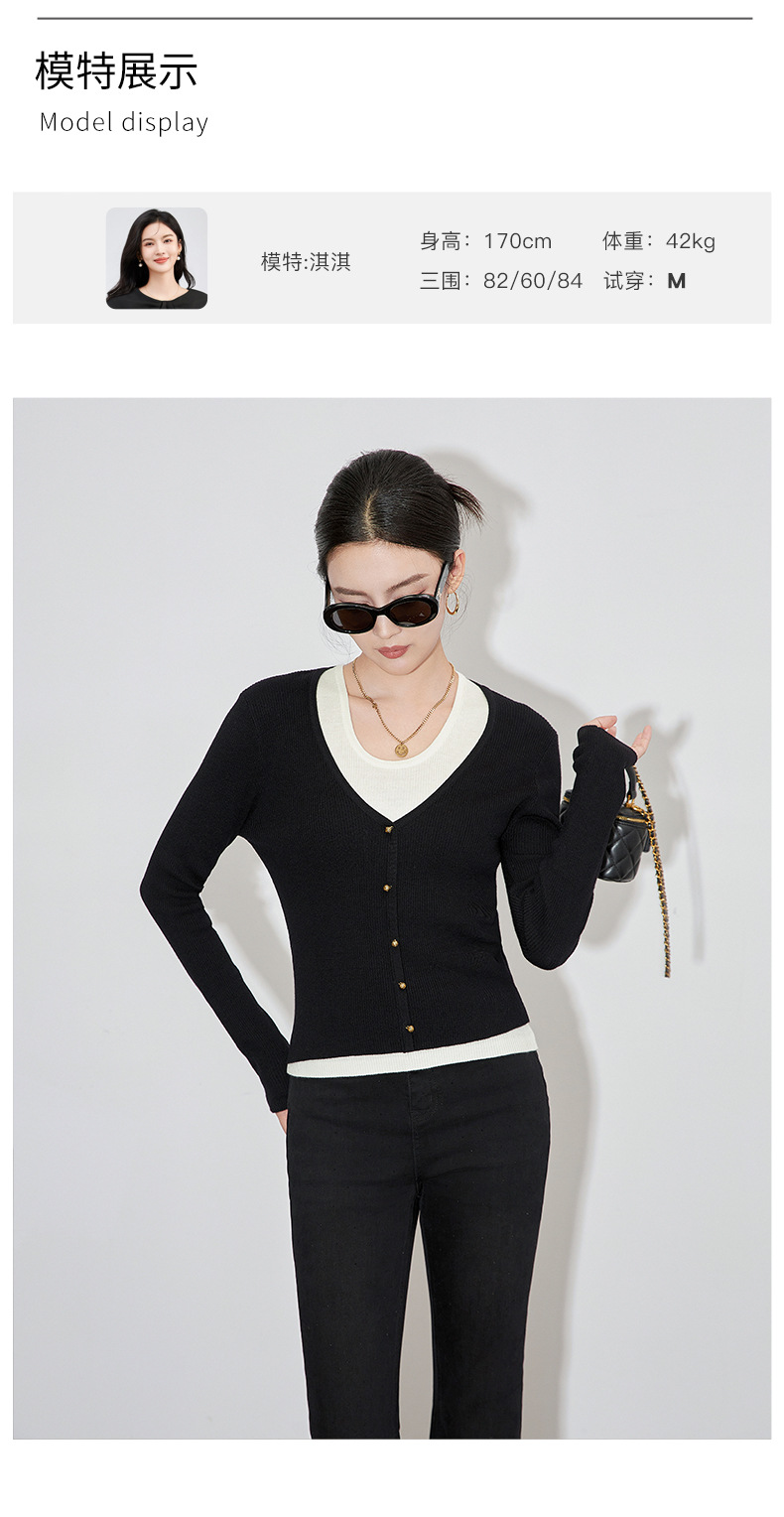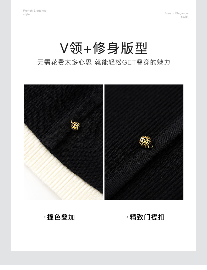【高货wl】全新升级【铂金会员201/天猫269/差价68】(34912) 洛诗琳法式简约羊毛早秋女装V领长袖背心开衫撞色两件套