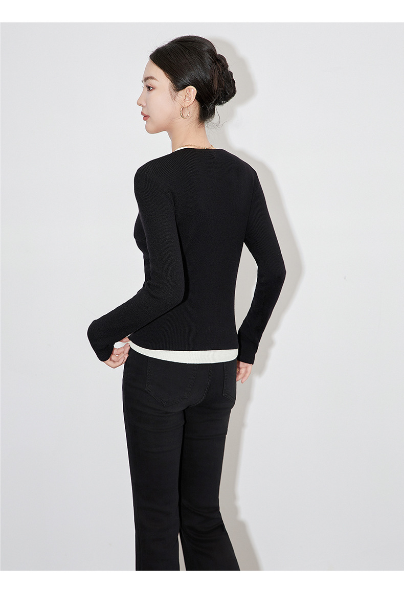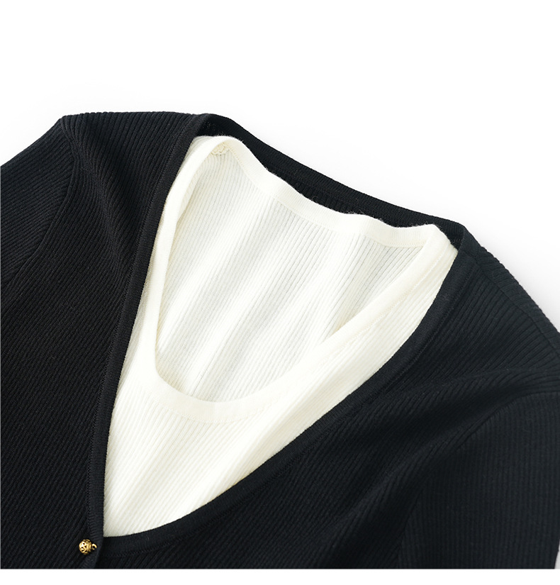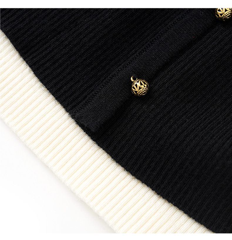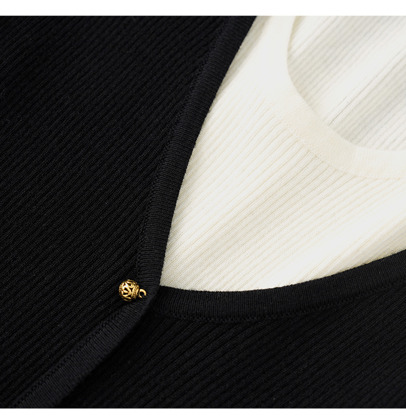 【高货wl】全新升级【铂金会员201/天猫269/差价68】(34912) 洛诗琳法式简约羊毛早秋女装V领长袖背心开衫撞色两件套