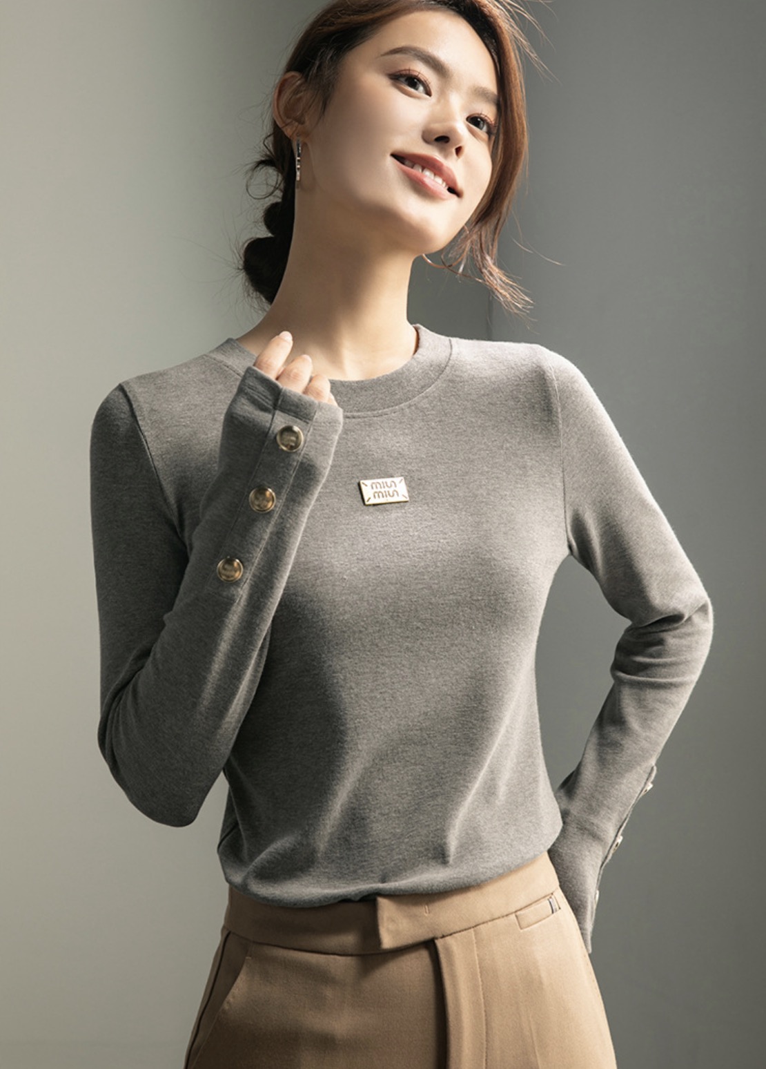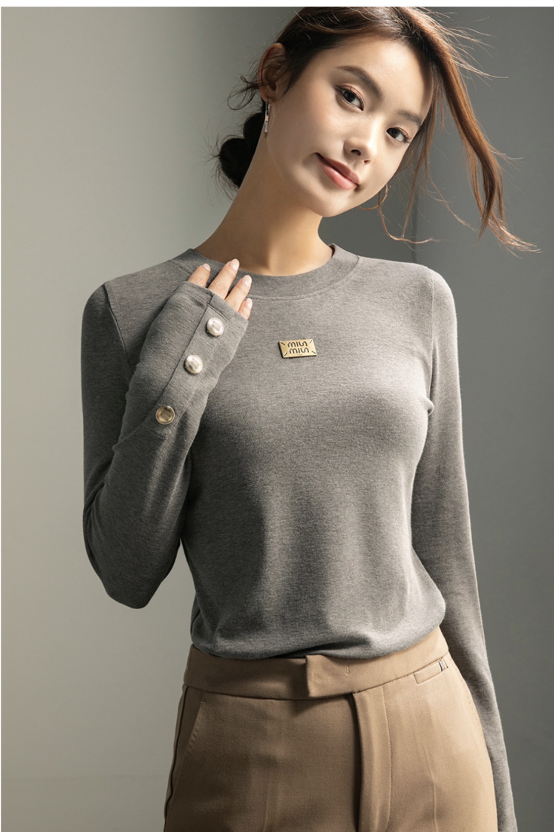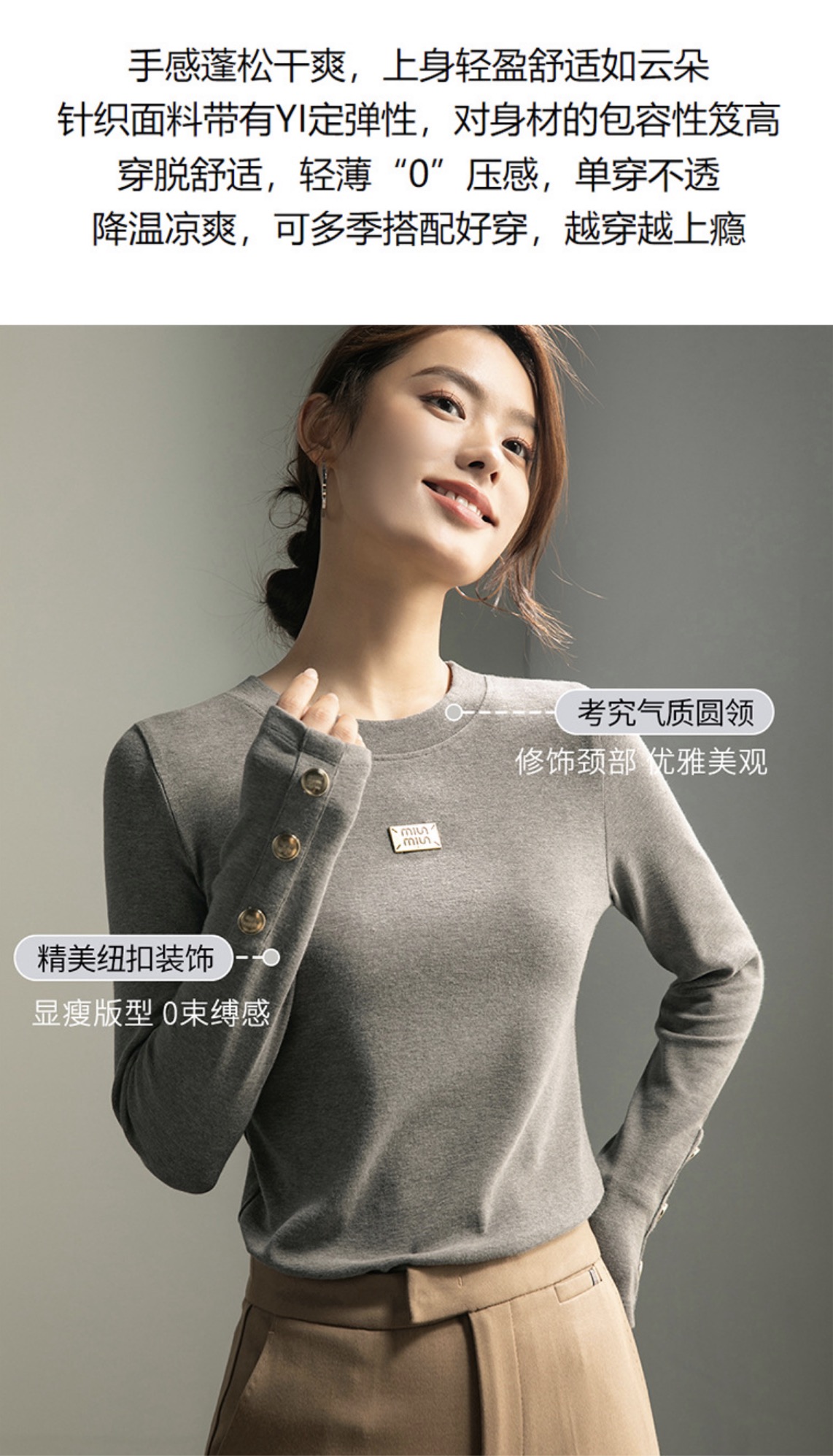「自j」全新升级【铂金会员119/天猫159/差价40】(93400)洛诗琳新款百搭圆领长袖打底衫2025秋冬高级感时髦打底上衣