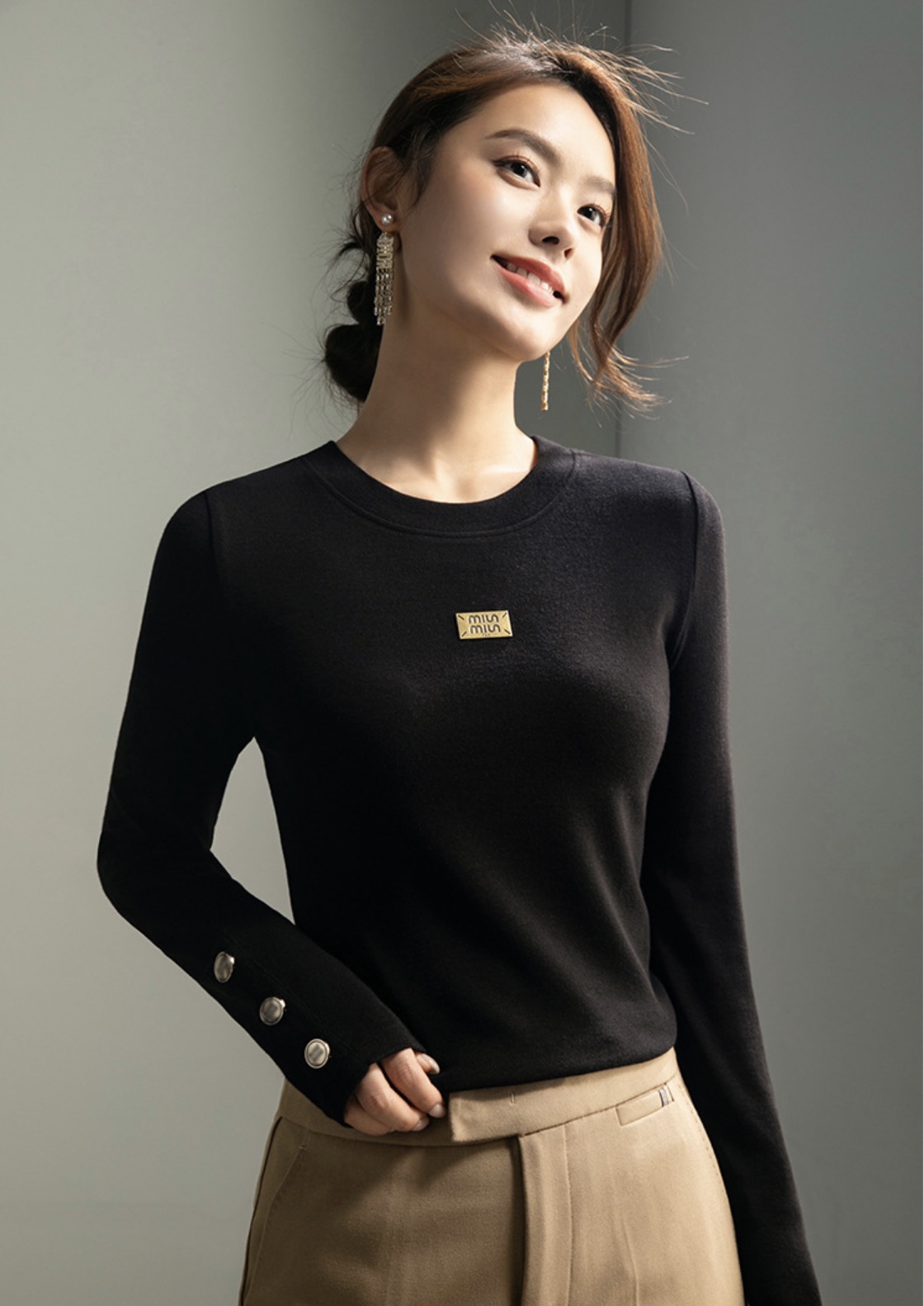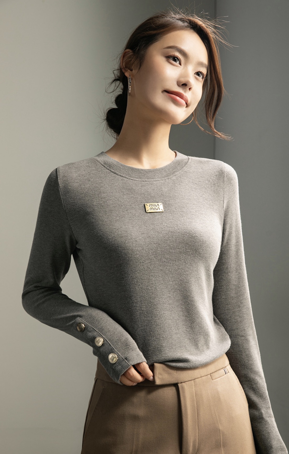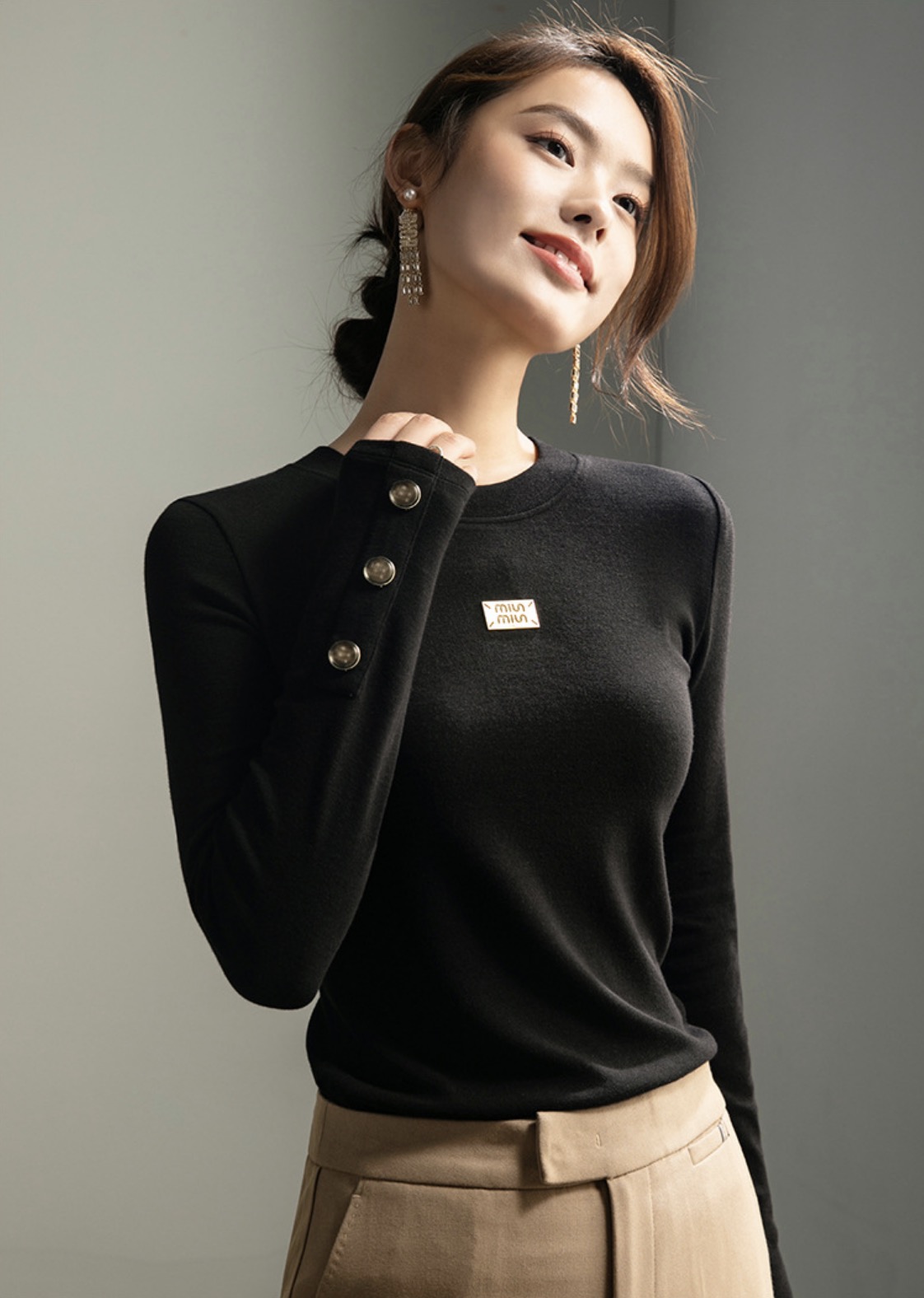 「自j」全新升级【铂金会员119/天猫159/差价40】(93400)洛诗琳新款百搭圆领长袖打底衫2025秋冬高级感时髦打底上衣