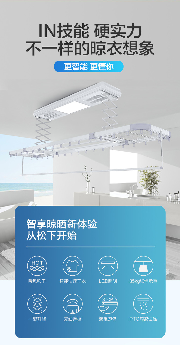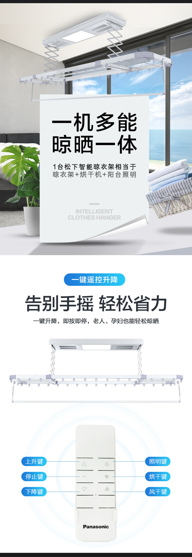 松下电动晾衣架阳台升降智能家用遥控自动烘干晒衣机伸缩晾衣杆