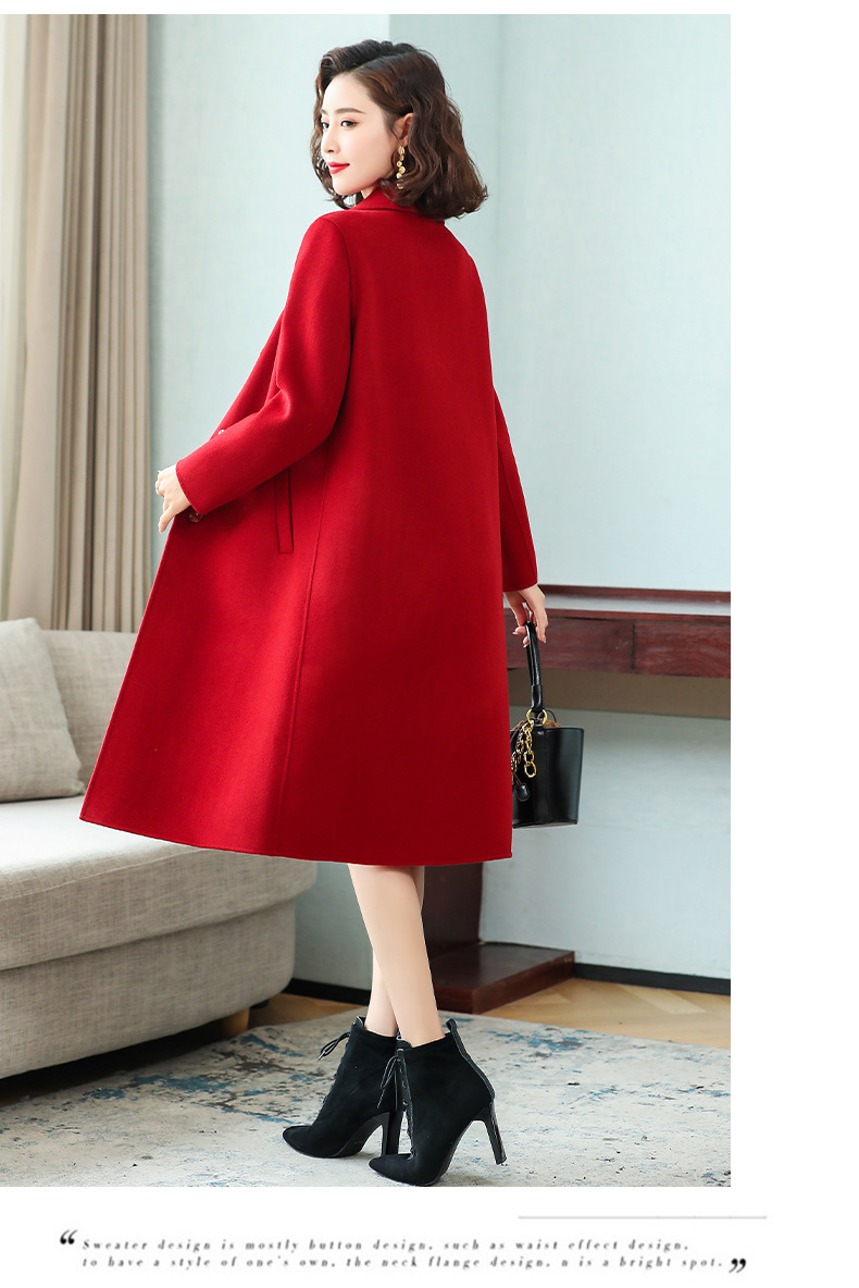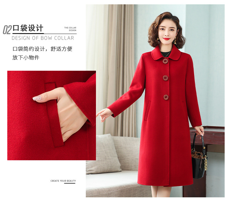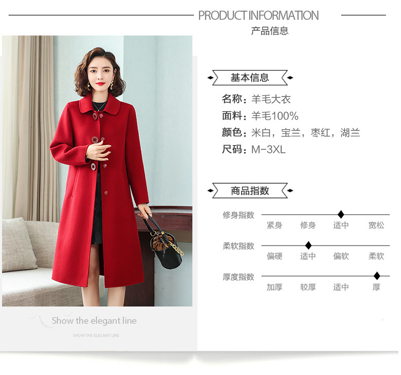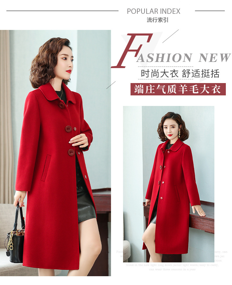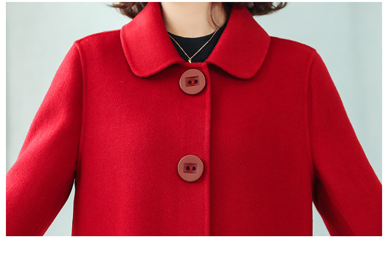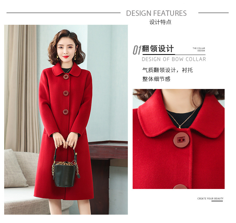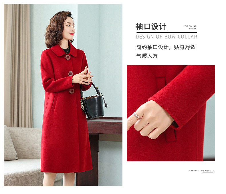 上海旗袍厂KQ-83807气质高品质羊毛双面呢大衣2020冬方领显瘦喜婆婆大红大码毛呢外套