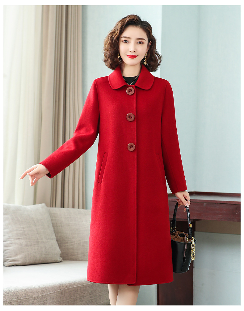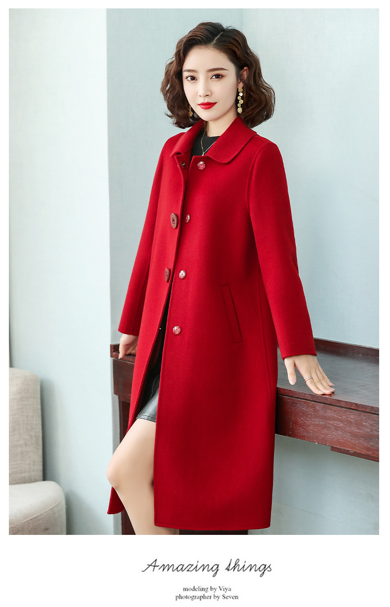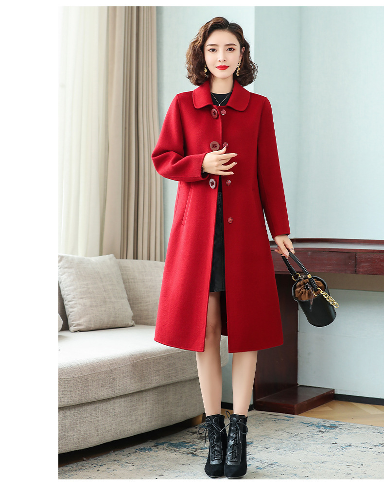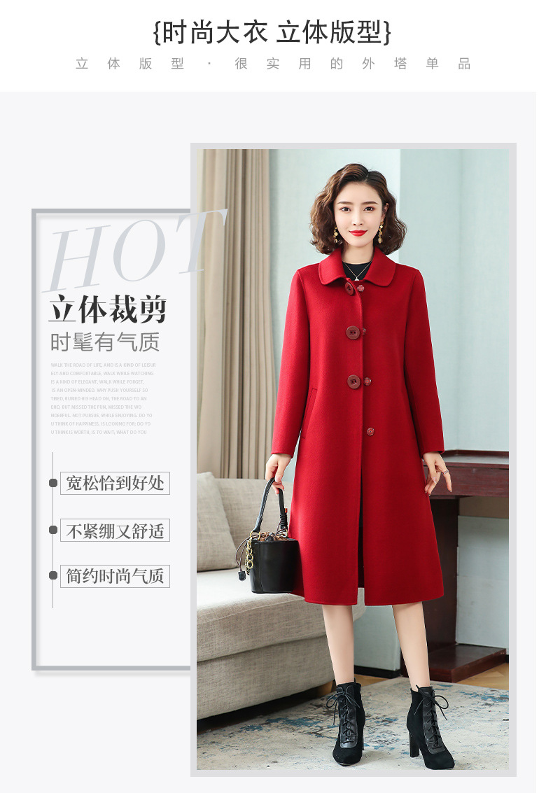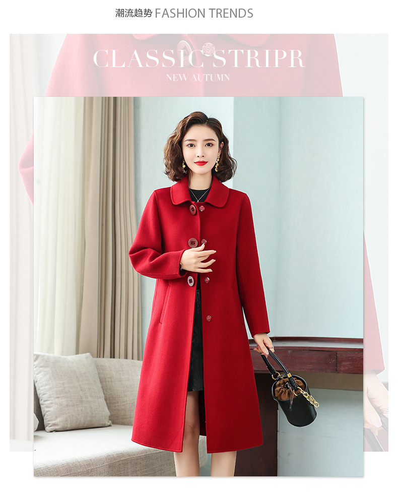 上海旗袍厂KQ-83807气质高品质羊毛双面呢大衣2020冬方领显瘦喜婆婆大红大码毛呢外套