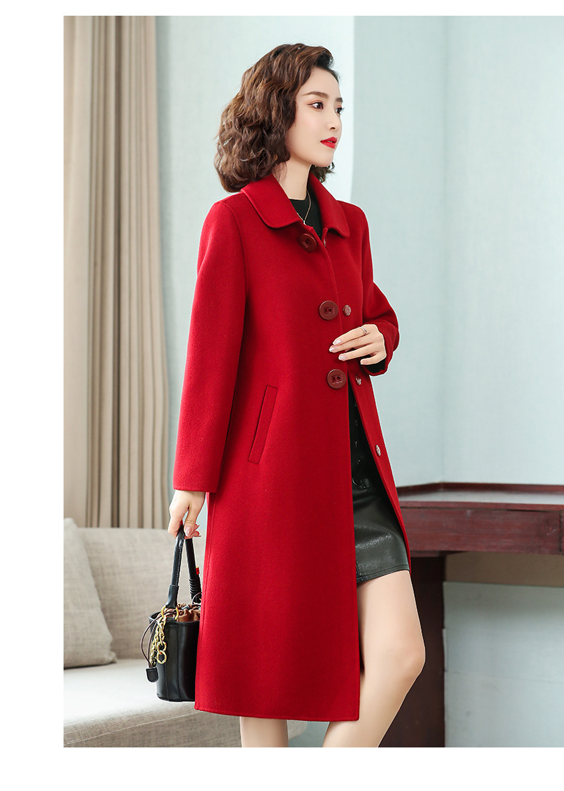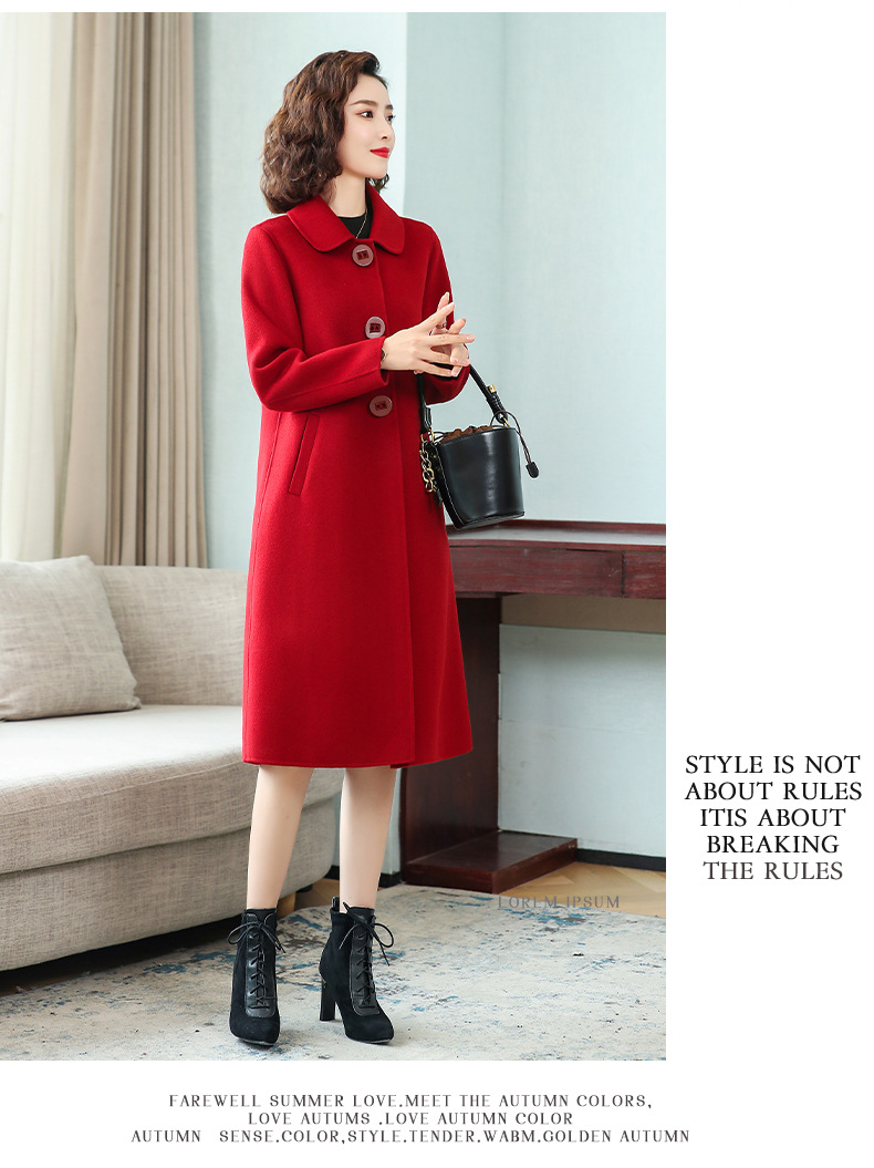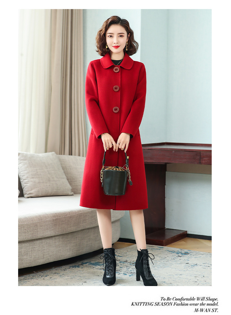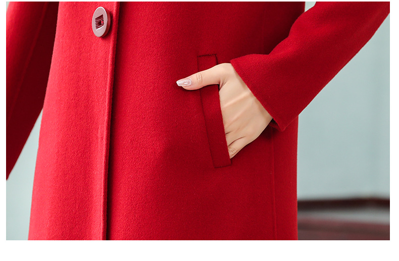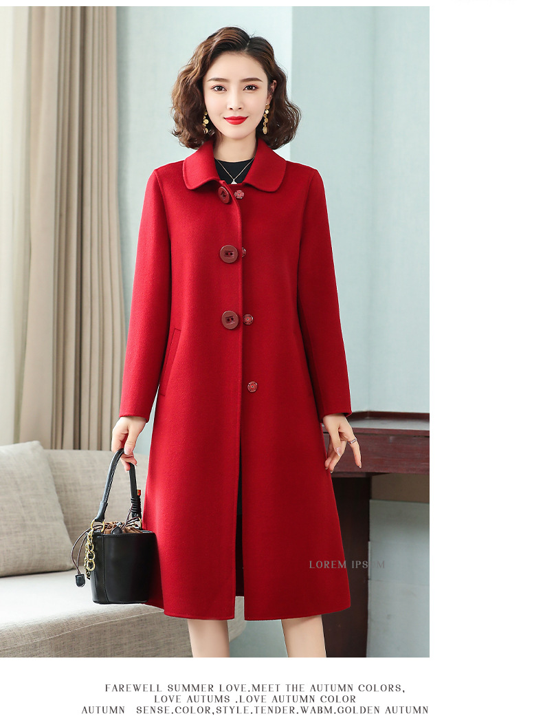 上海旗袍厂KQ-83807气质高品质羊毛双面呢大衣2020冬方领显瘦喜婆婆大红大码毛呢外套