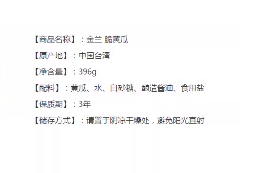 台湾金兰脆瓜/1罐(396g)生产日期:25年9月