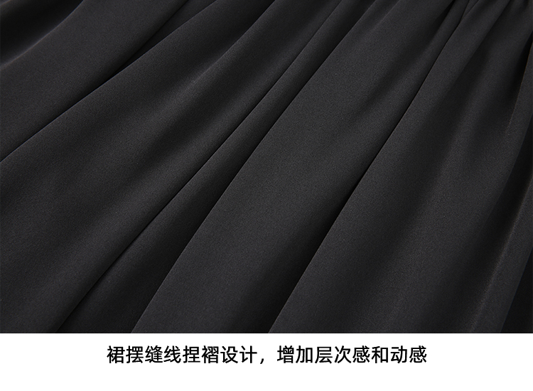 下架-EITIE爱特爱秋季新款气质通勤显瘦百搭伞裙高腰a字黑色半身裙C2206006