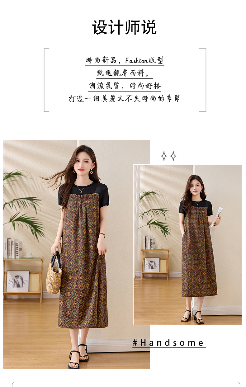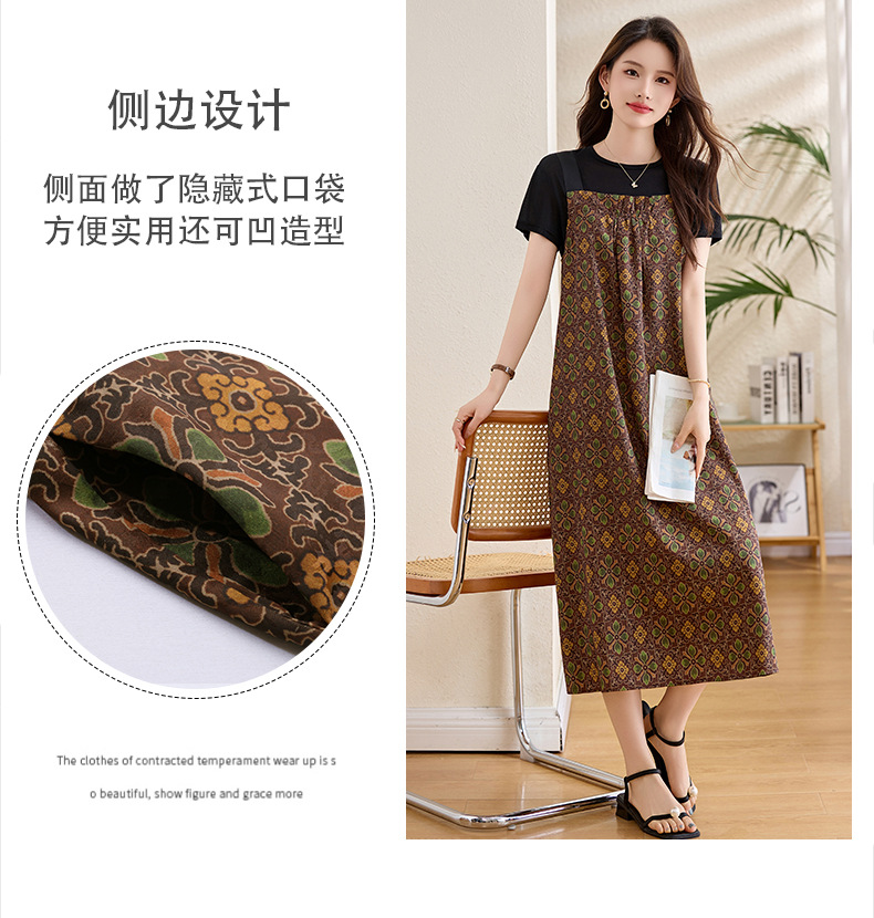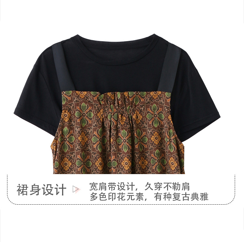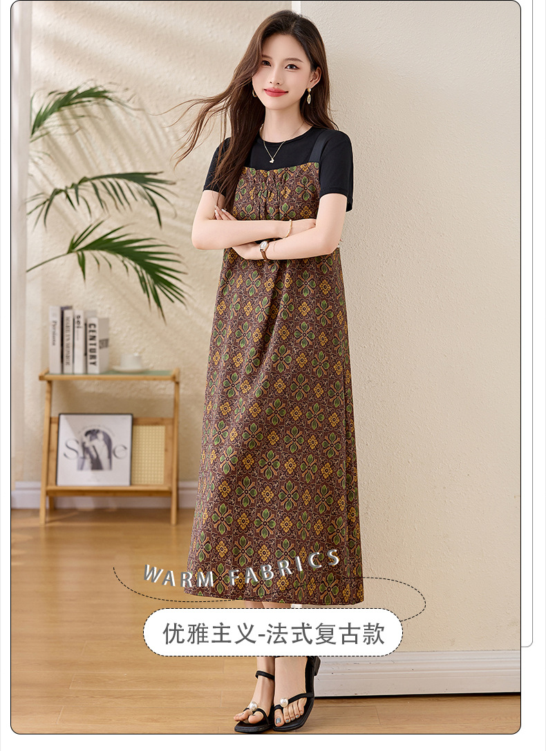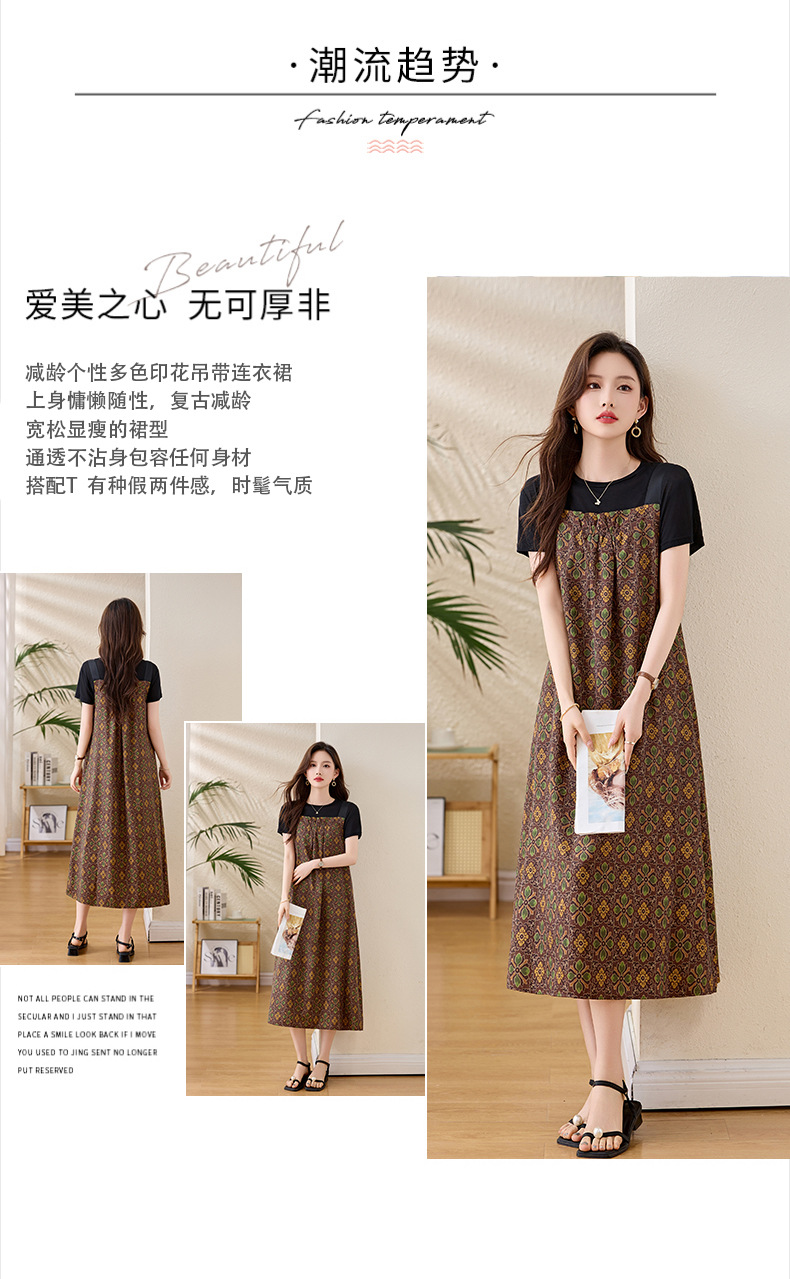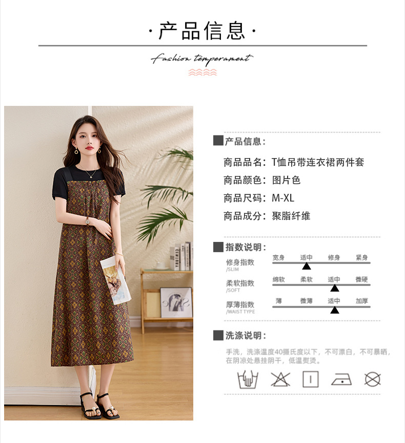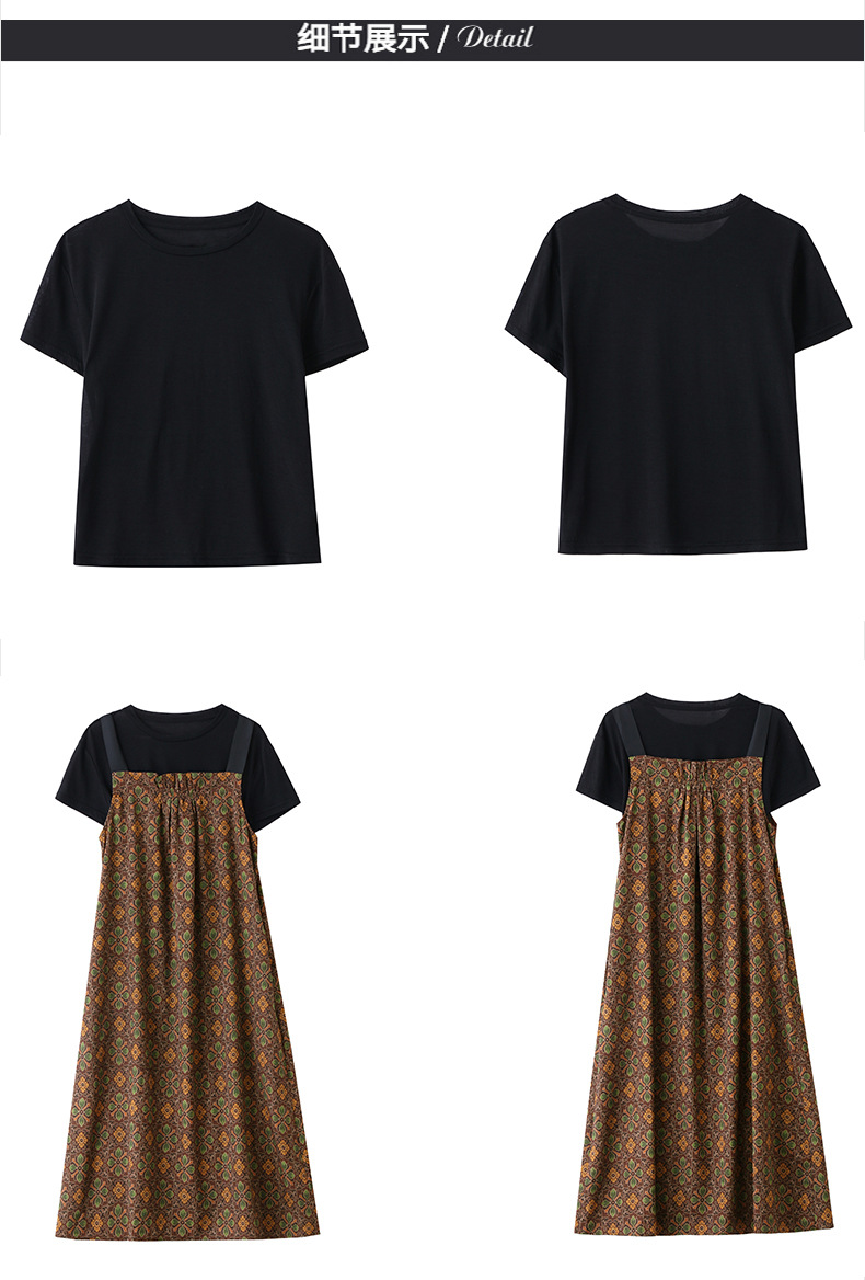 印花吊带连衣裙套装,新中式国风T恤穿搭上衣两件套HR-1020