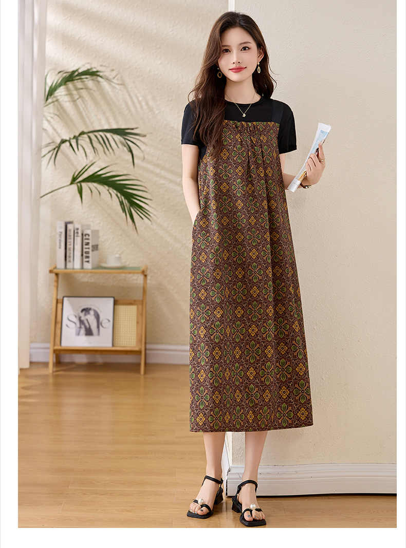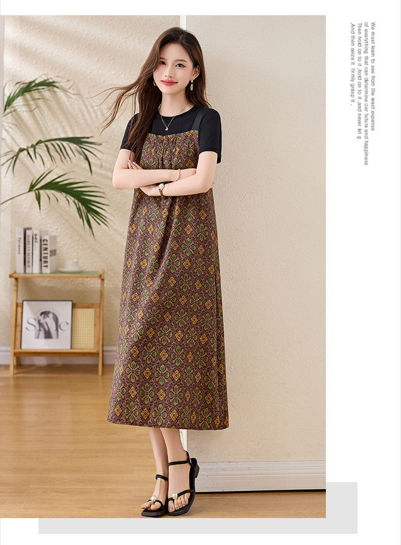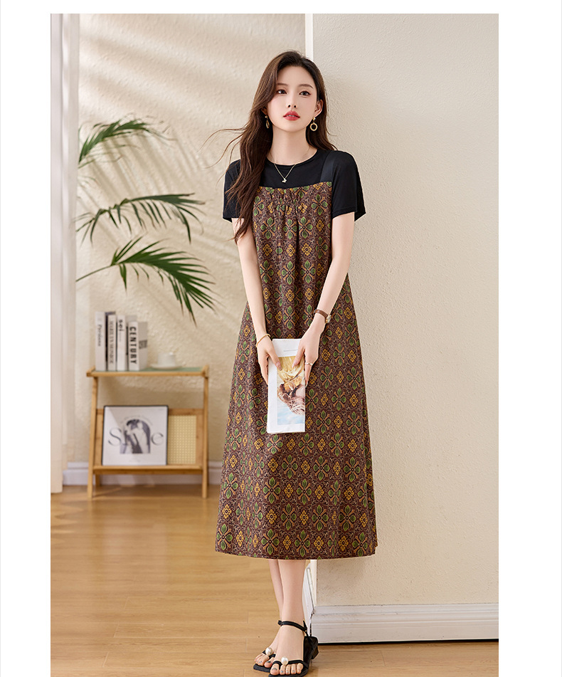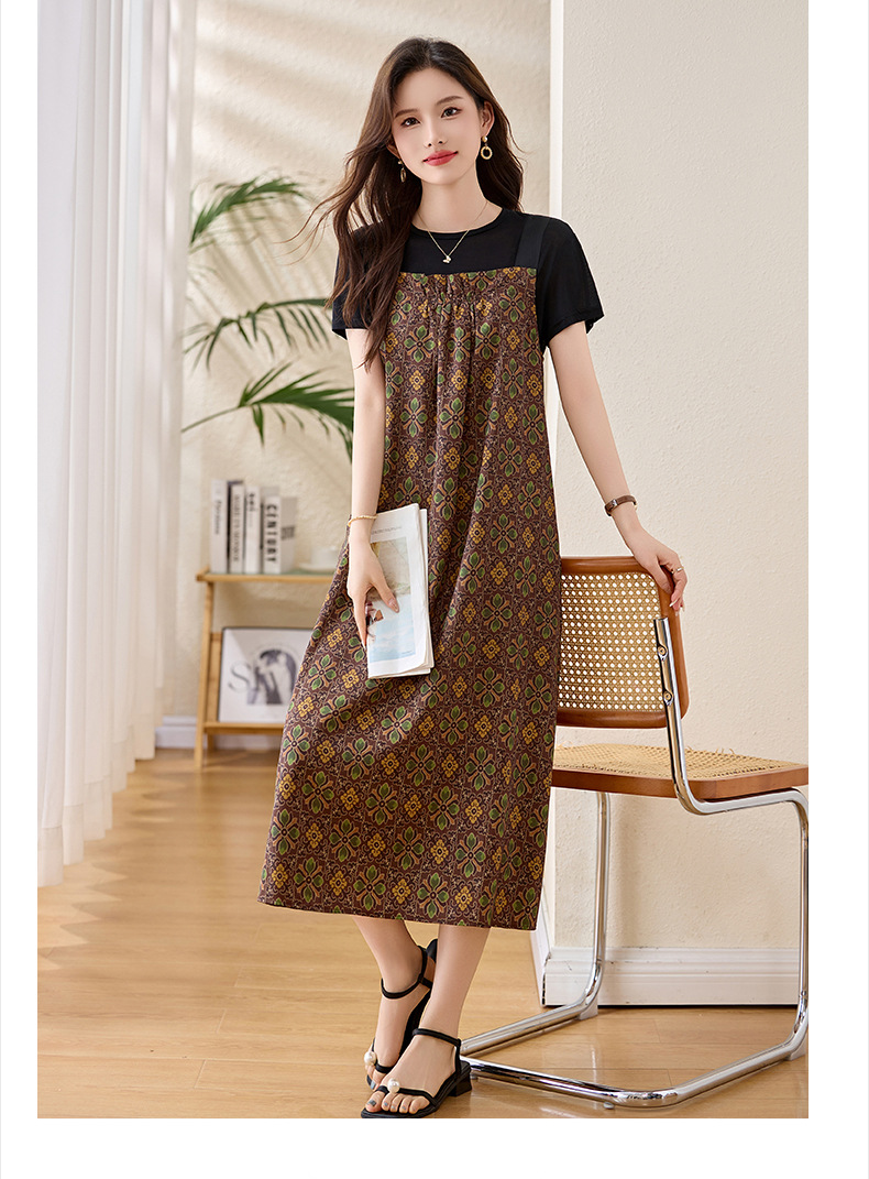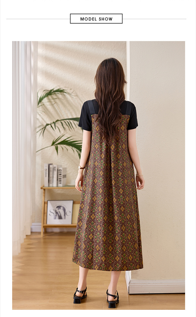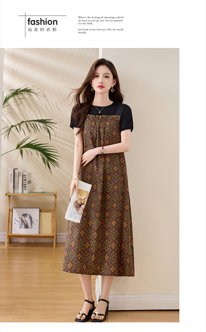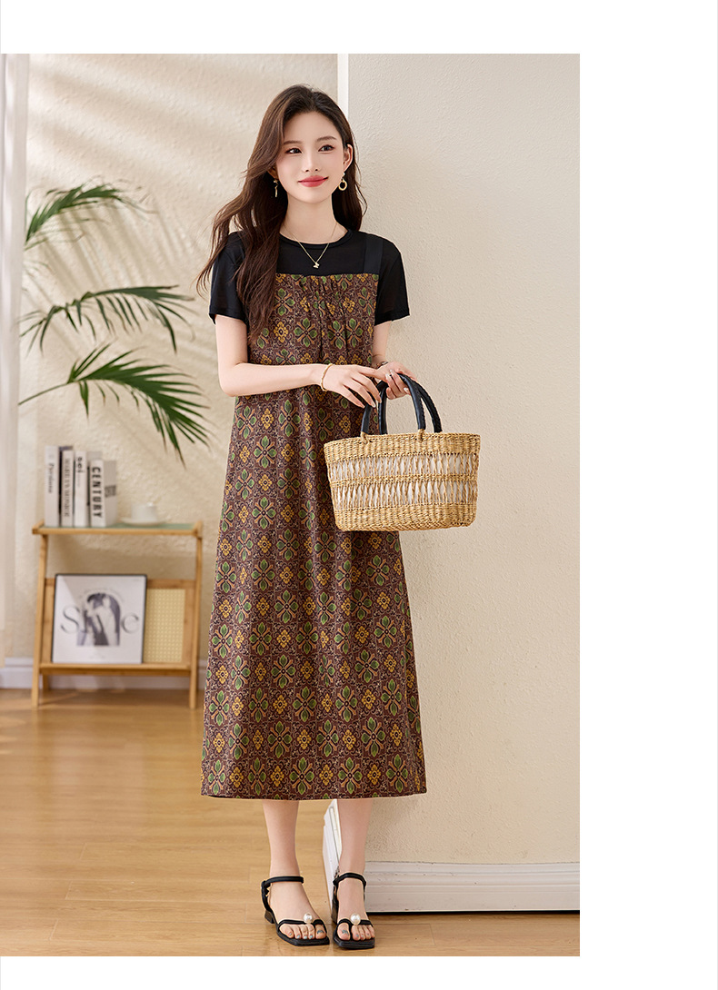 印花吊带连衣裙套装,新中式国风T恤穿搭上衣两件套HR-1020