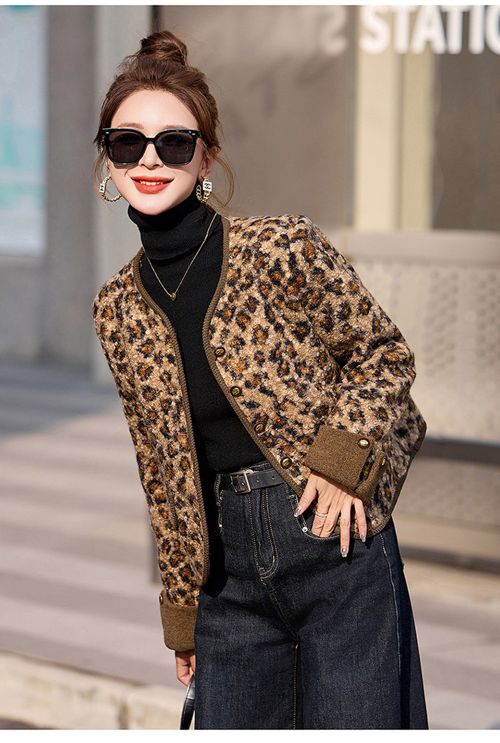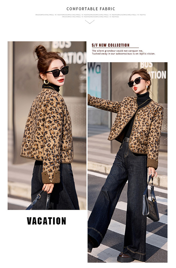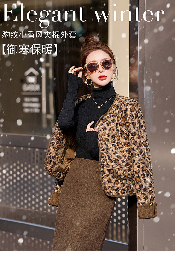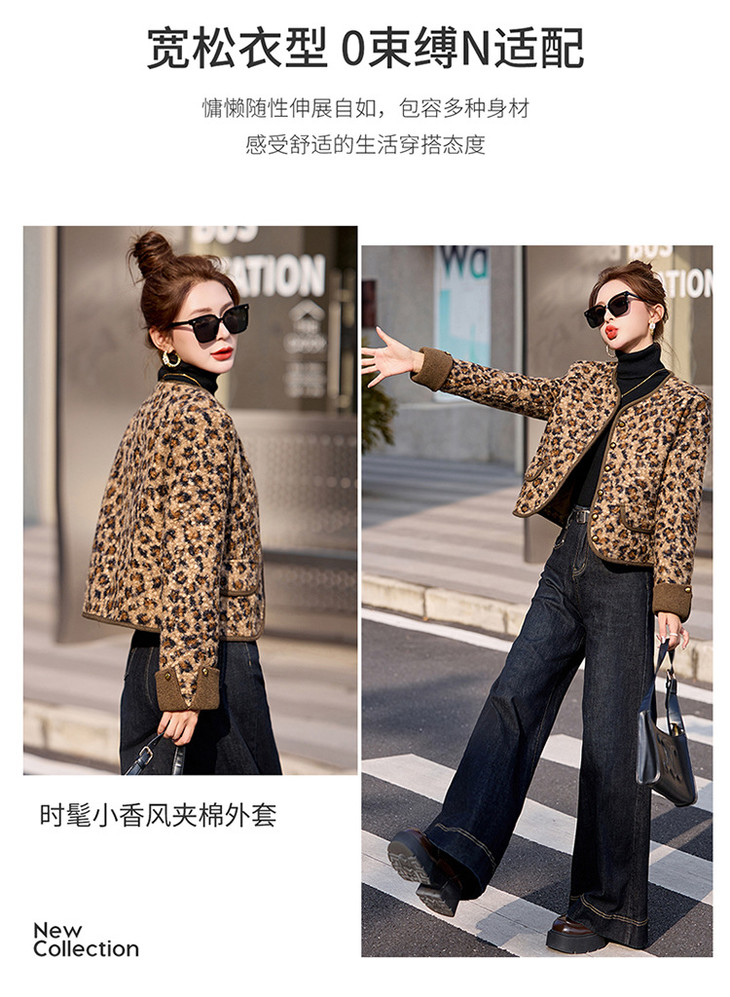 圆领豹纹夹棉短款上衣时尚外套棉衣 YBX8806