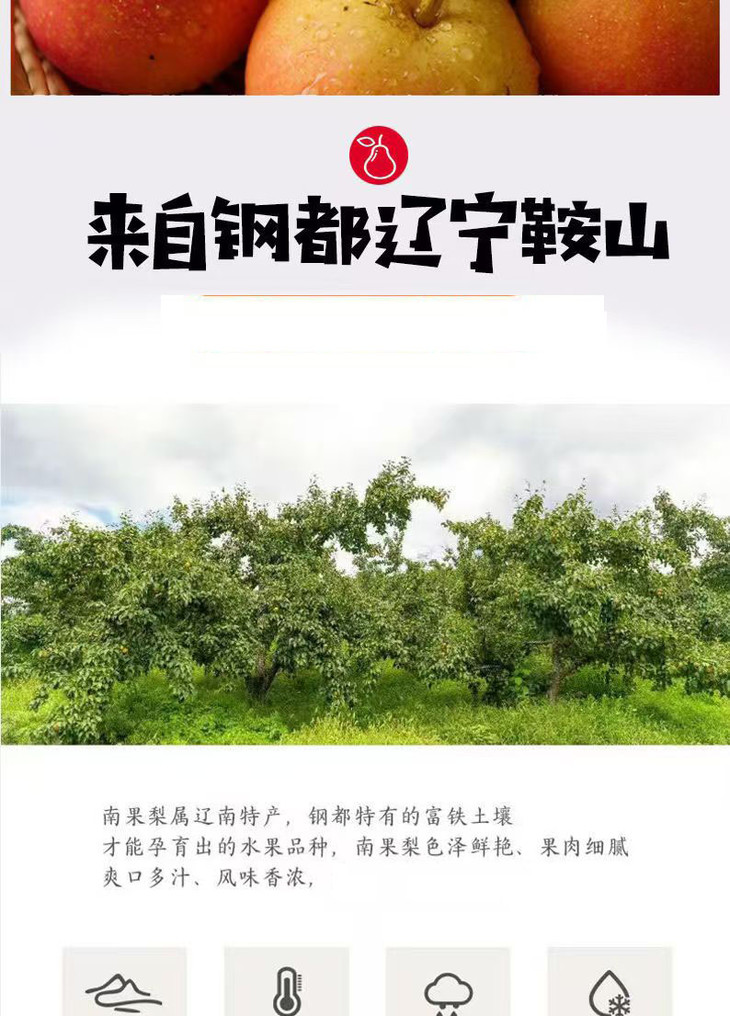 【果蔬精选】正宗鞍山南果梨 绿色认证 果肉细腻 口感清甜多汁 咬上一口 汁水在口中四溢 甜蜜的滋味瞬间弥漫开来 带给你无尽的满足