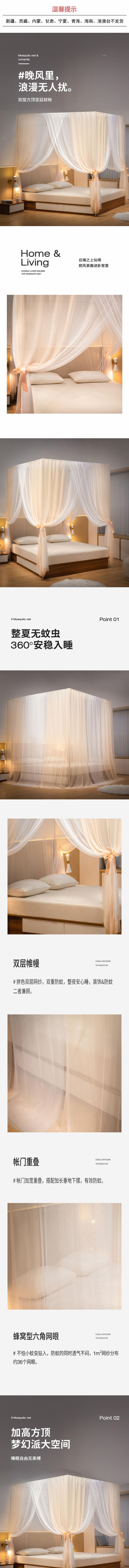 俞兆林 落地款双层方顶宫廷蚊帐150*200cm香槟色 YZL-24060