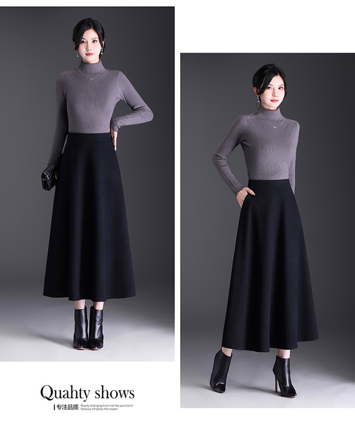 垂感修身通勤时尚A字裙,简约百褶长裙高腰显瘦半身裙MYX-JYM-25112-L