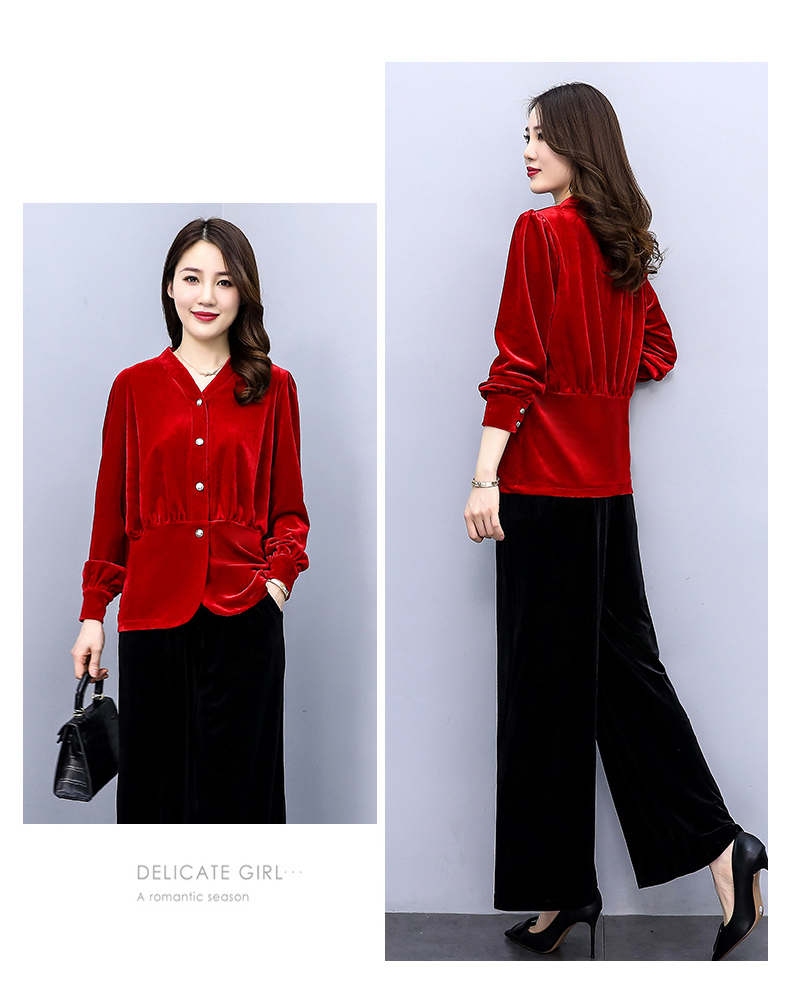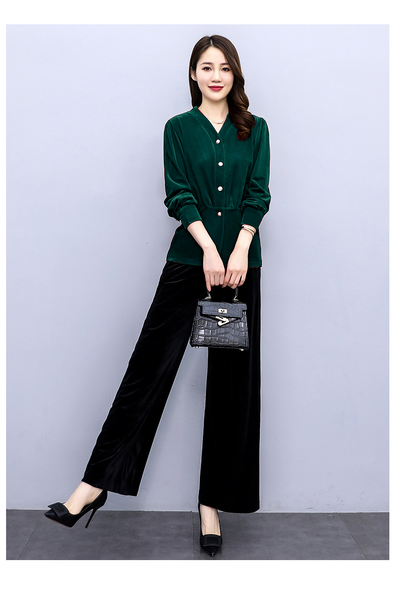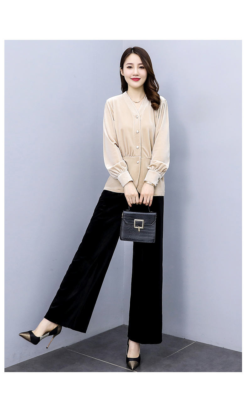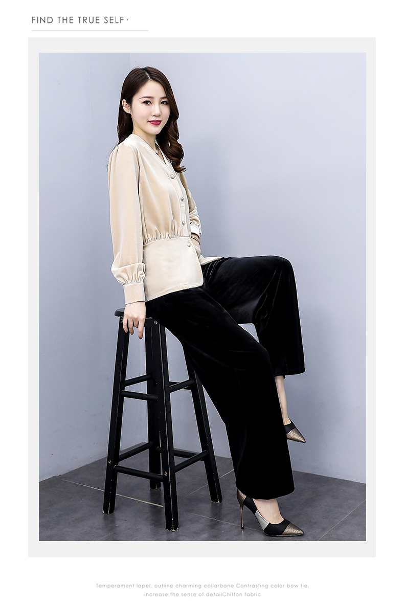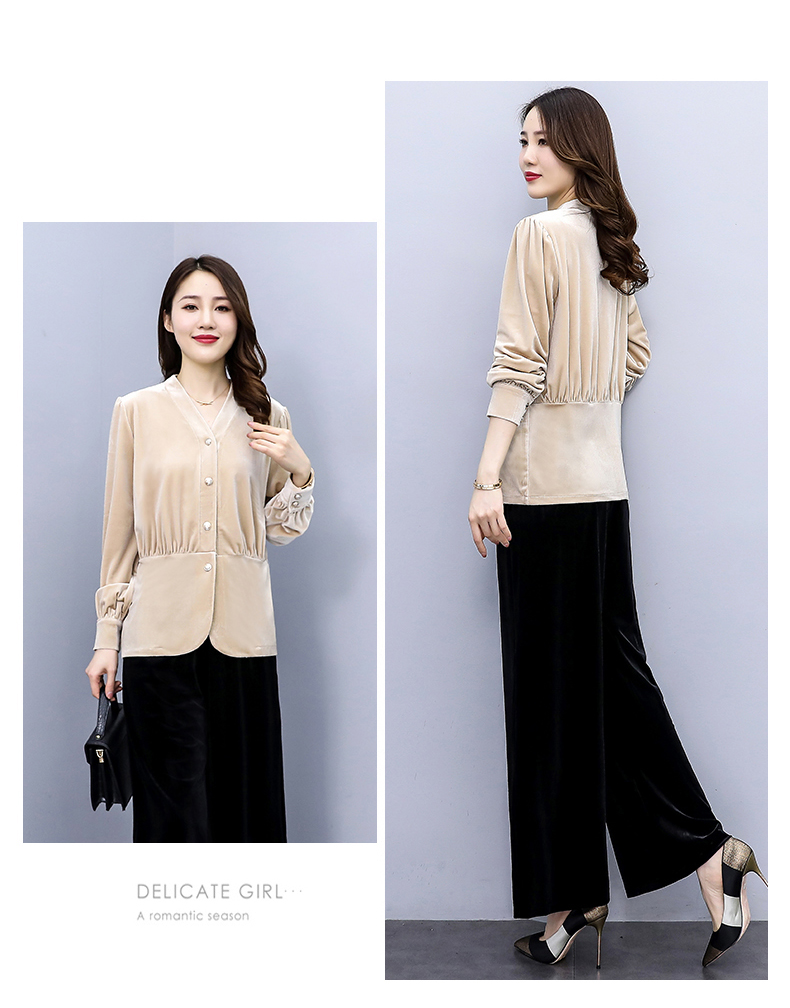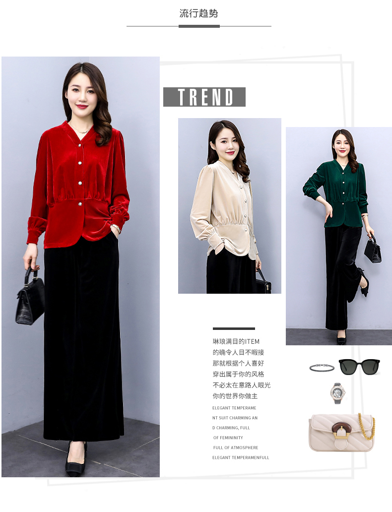 2022年春季圆领个性气质款金丝绒时尚优雅潮流舒适套装 HRYZ7736