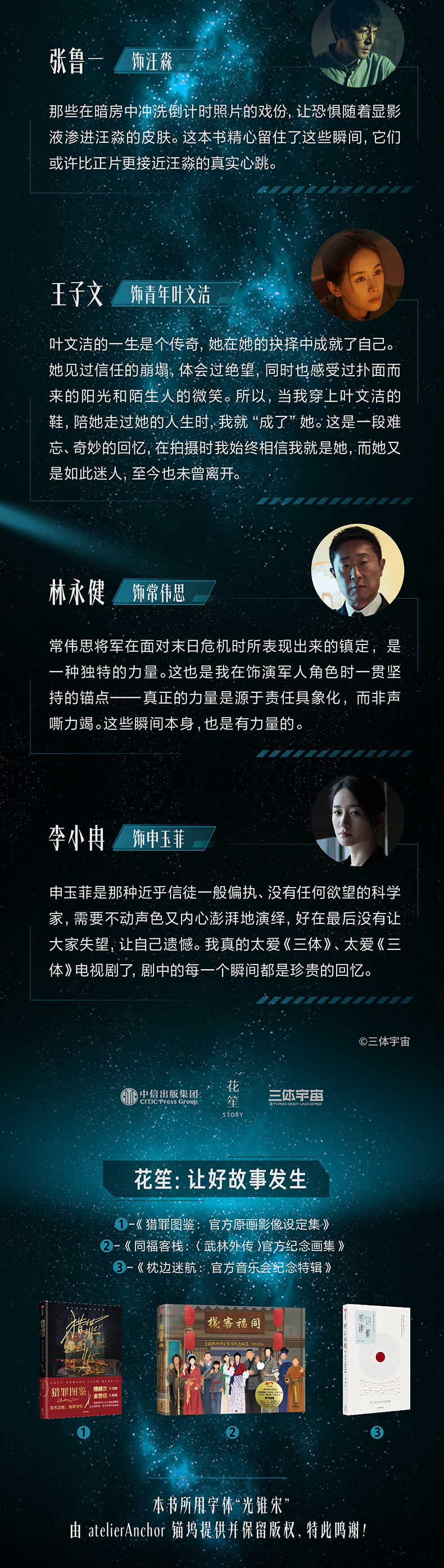 3、由11次获奖“中国美的书”荣誉设计师白凤鹍操刀图书整体装帧设计,特别定制全新字体——光锥宋,兼具科技感和年代感,以细节处的巧思呼应剧集。