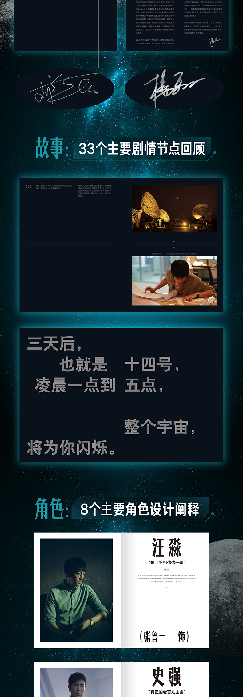 4、这也是一份纪念中国科幻影视工业化的里程碑式档案。大16开全彩印刷,烫银星空概念设计,精选多种特种纸,致还影像原彩细节,并突显新闻纪实之感,具典藏纪念价值。