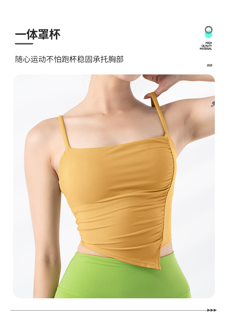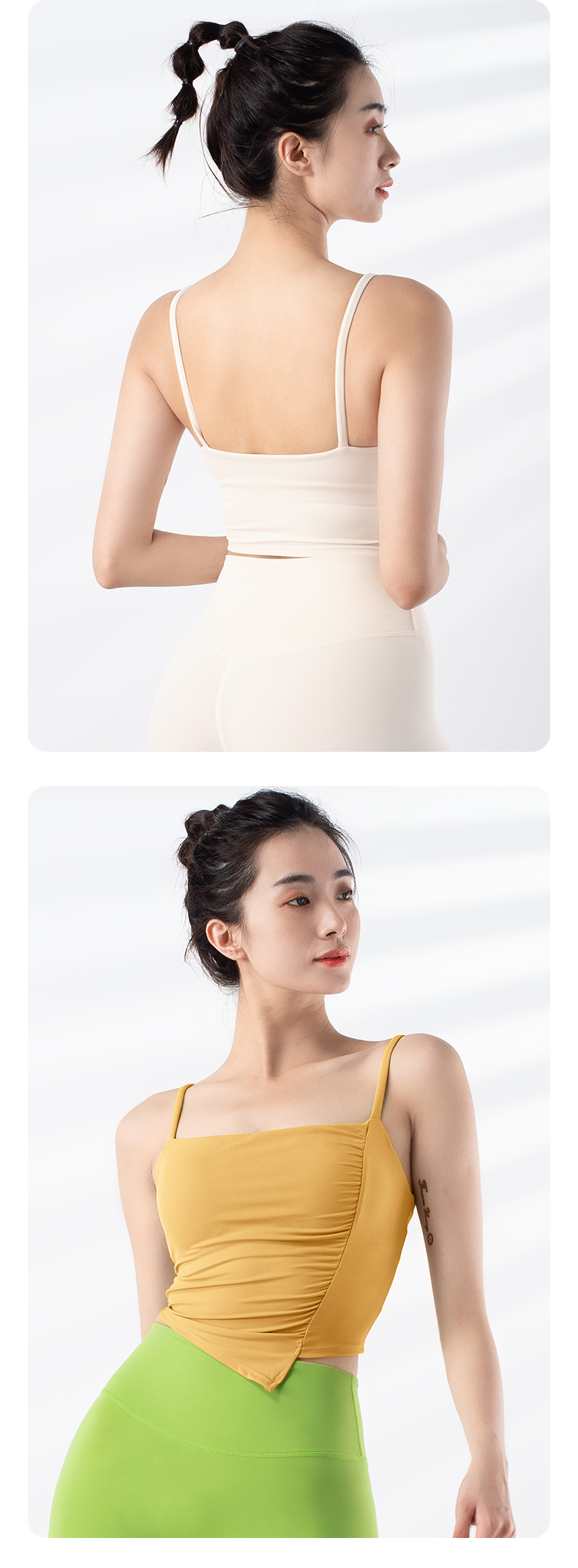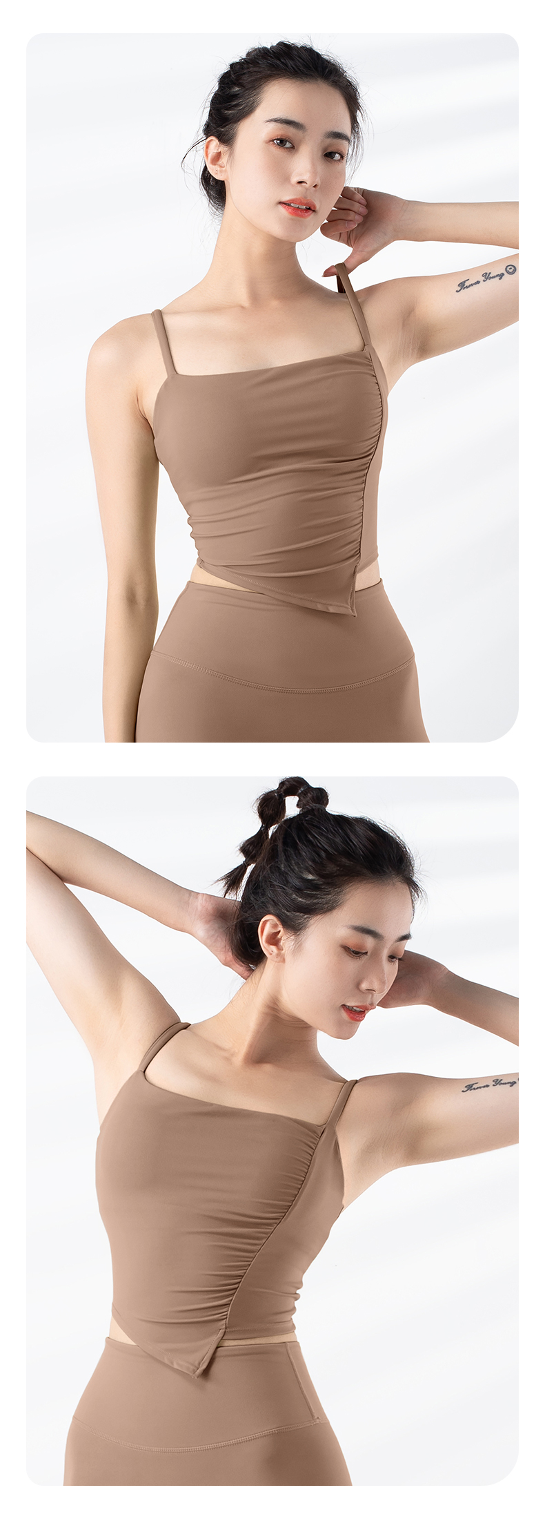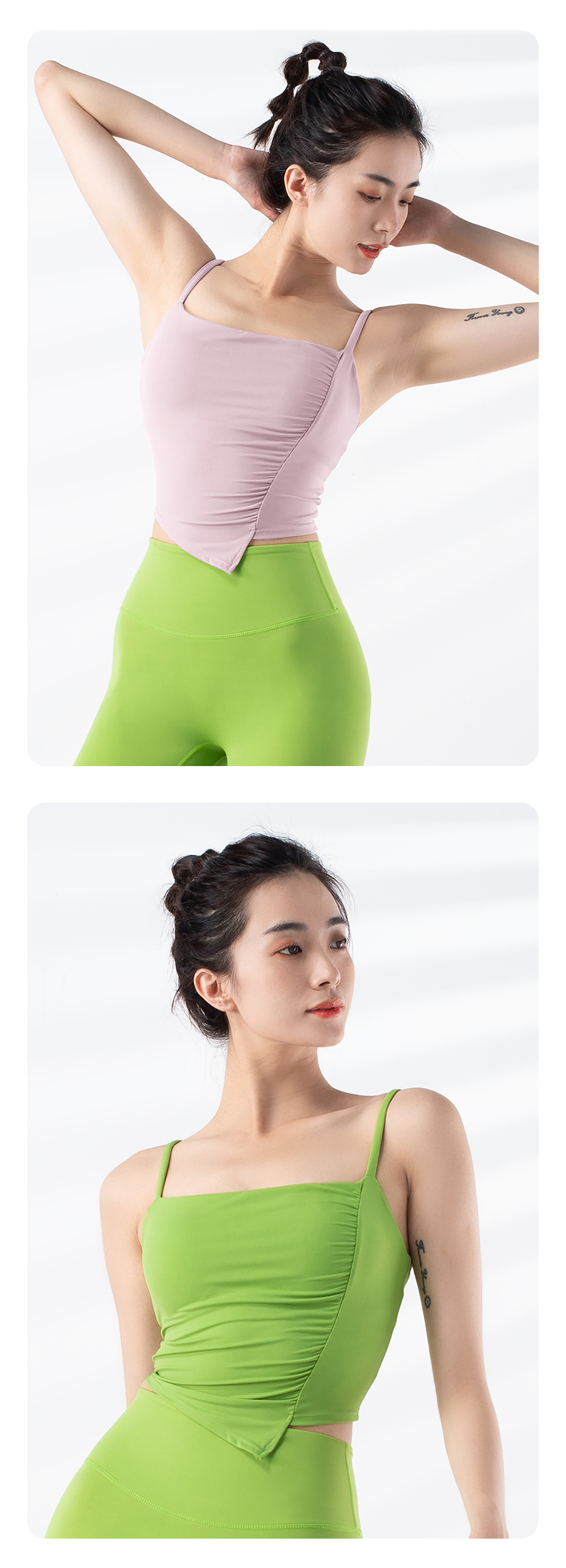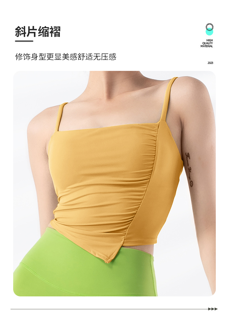 跃牌【禅语梵心系列】新品固定杯侧缩褶防震运动吊带瑜伽服背心F2245(一体式胸垫)