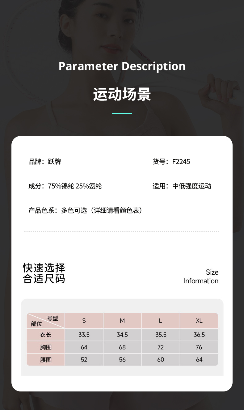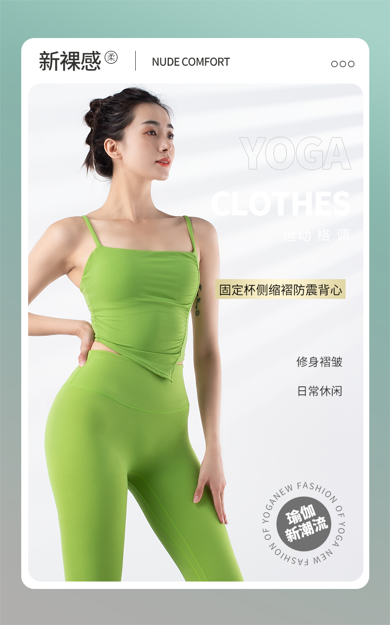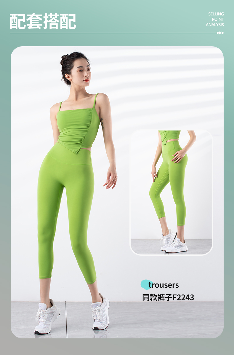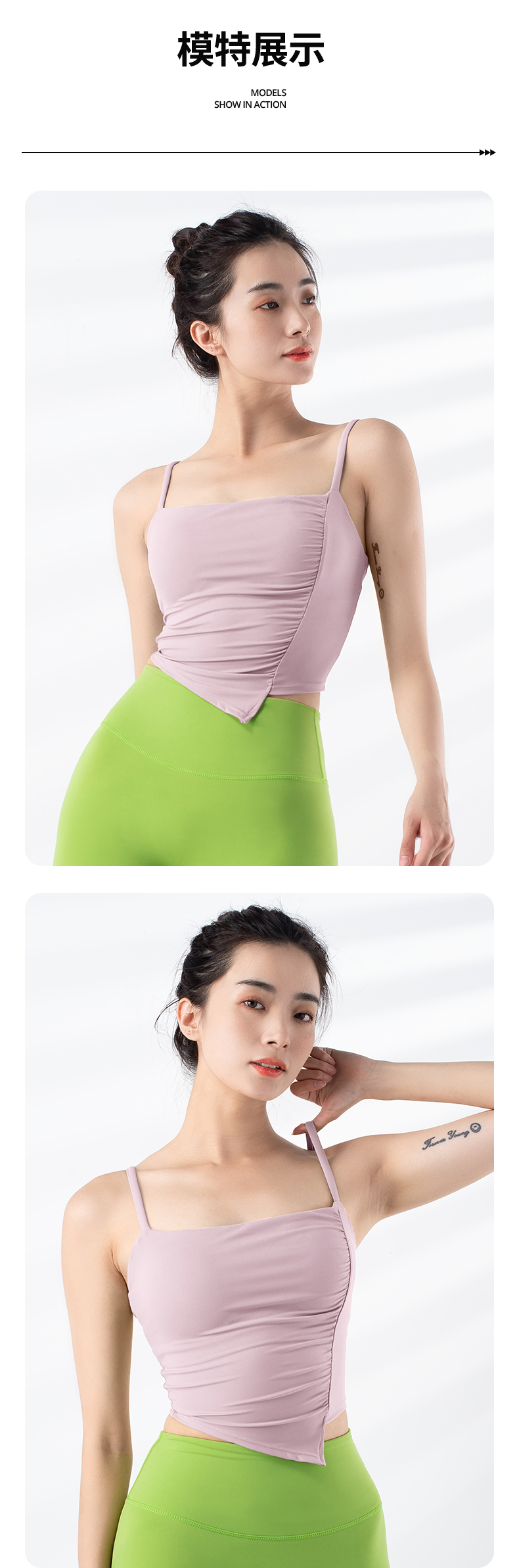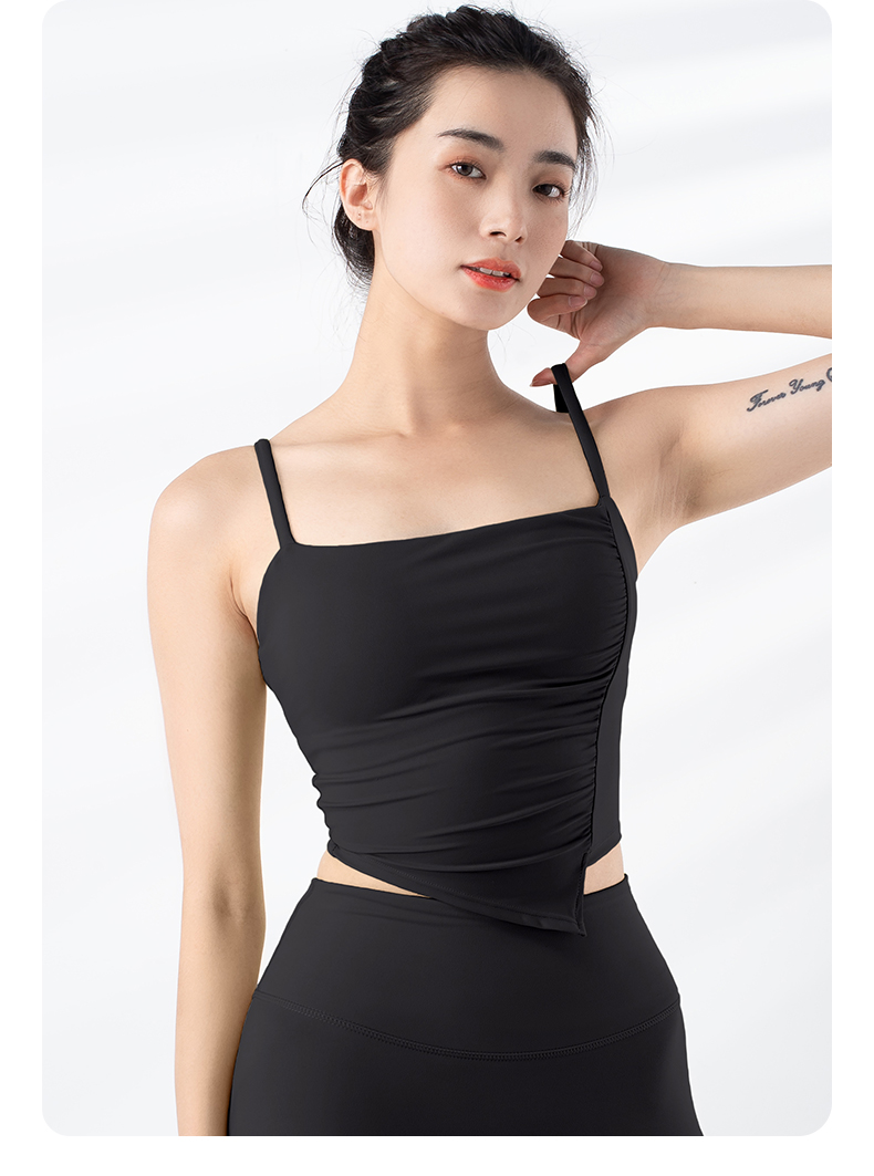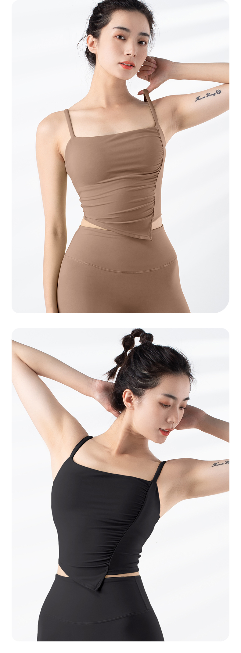 跃牌【禅语梵心系列】新品固定杯侧缩褶防震运动吊带瑜伽服背心F2245(一体式胸垫)