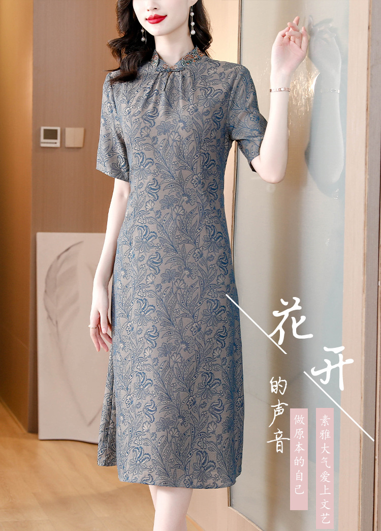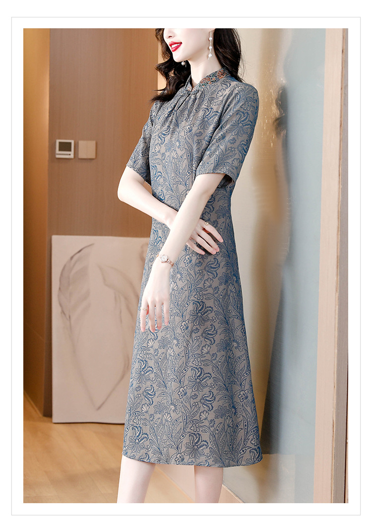 DD-洋气立领拼接民族风显瘦改良旗袍连衣裙