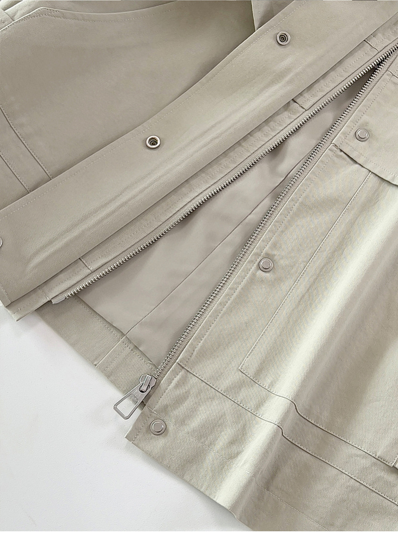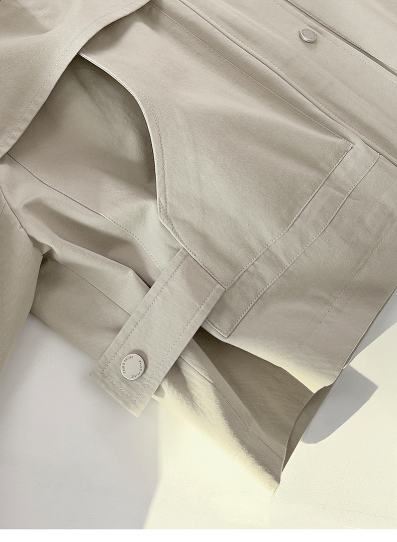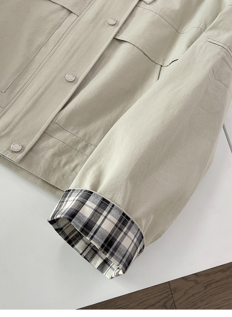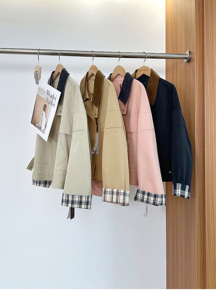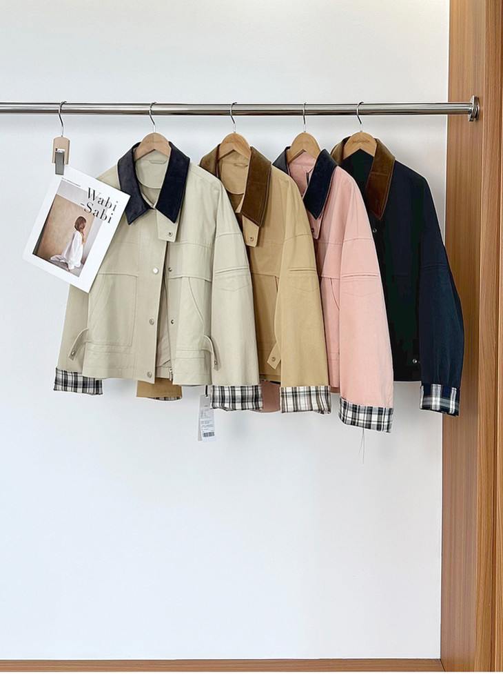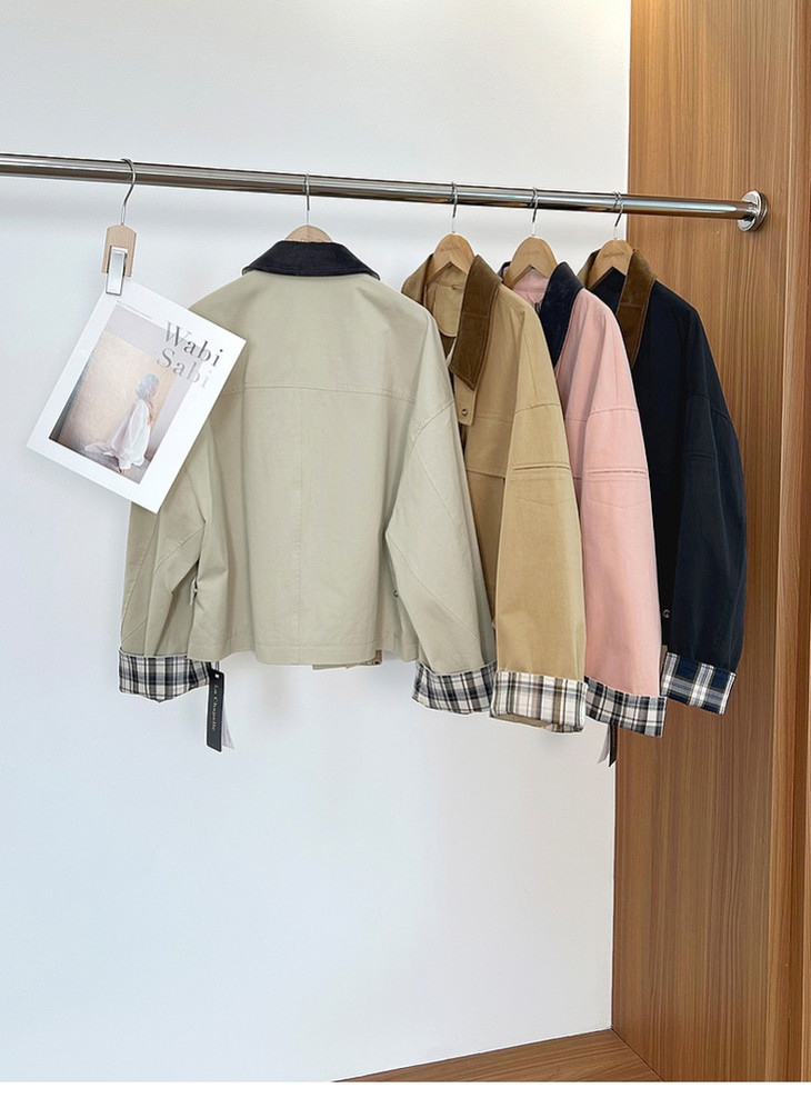专柜实拍【巴恩工装风】拉夏贝尔/La Chapelle轻奢设计师款!撞色翻领拼接宽松百搭小个子短外套