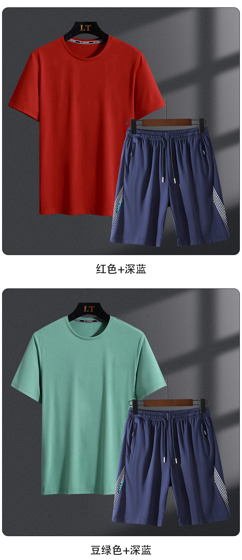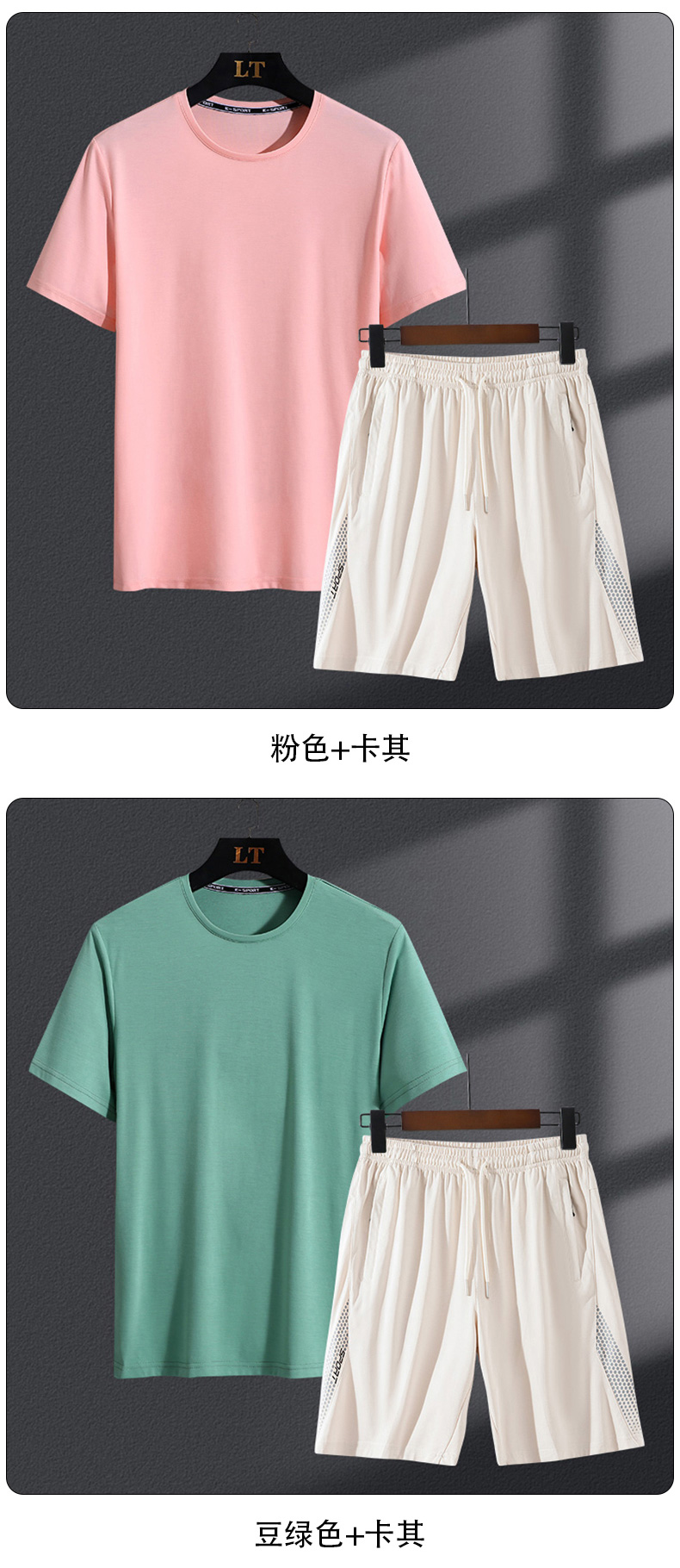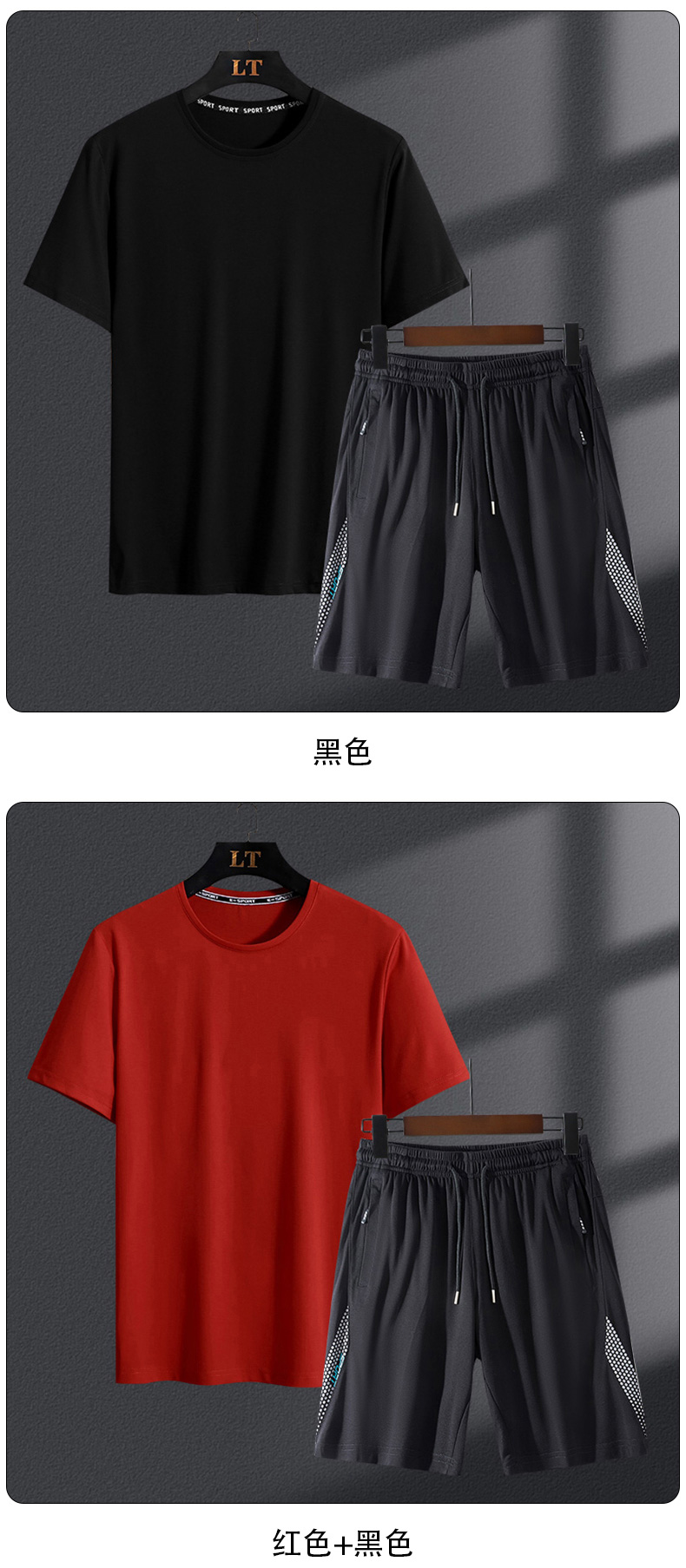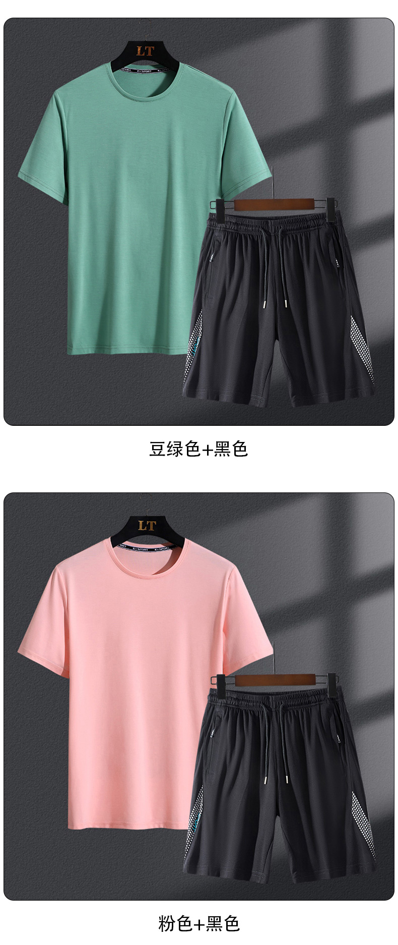 【Q】【新款DSK】大依优型大码男装夏季运动加肥加大套装大号短袖t恤短裤