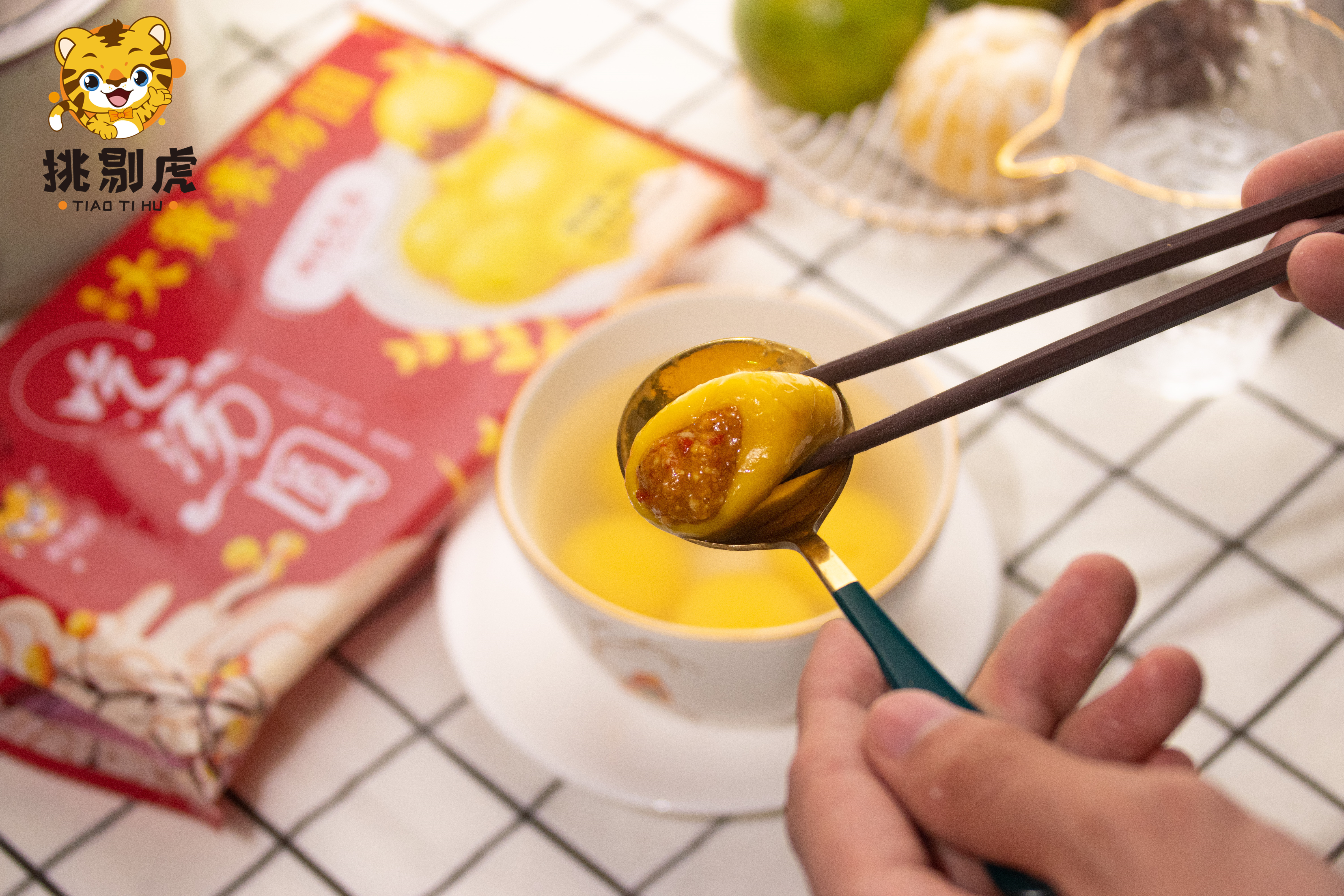 这款汤圆的外皮加入了“养胃神器”——粗粮大黄米,不仅软糯Q弹,还更容易被肠胃消化,解决了很多人吃汤圆的一大烦恼。