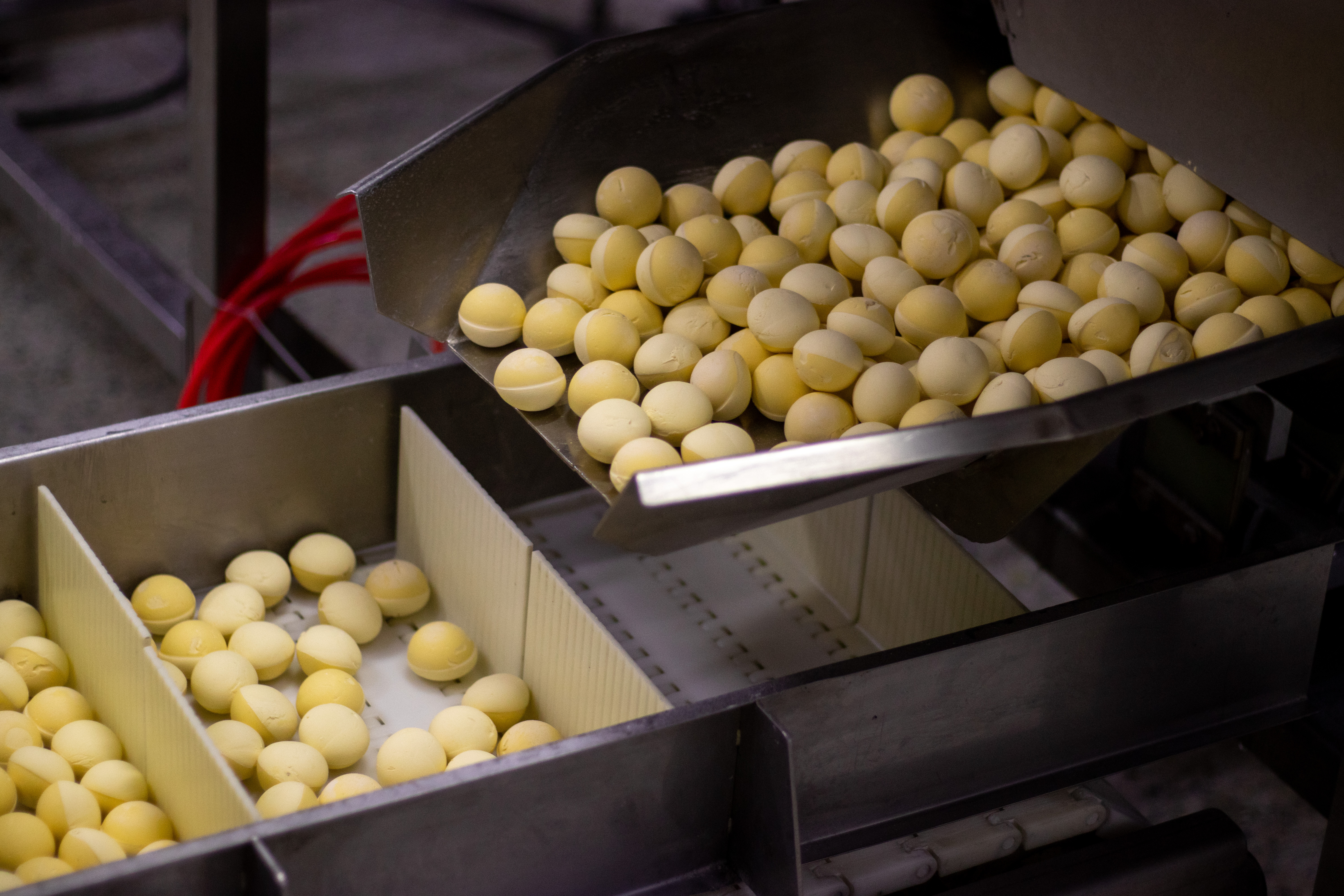 “大黄米”汤圆的大黄米比例大有讲究,少了口感不好,多了汤圆又容易散,在反复研究后,最终做出了大黄米含量高达30%的汤圆,看得见的金黄闻得到的米香。