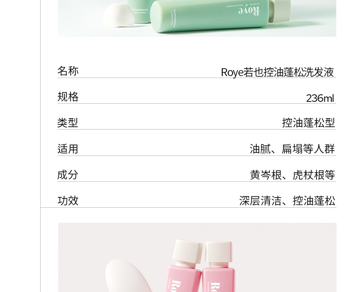 【控油/洗护】Roye若也去屑止痒/控油蓬松/滋养柔净/防脱固发 洗发水洗发露洗头膏男女柔顺洗发液套装