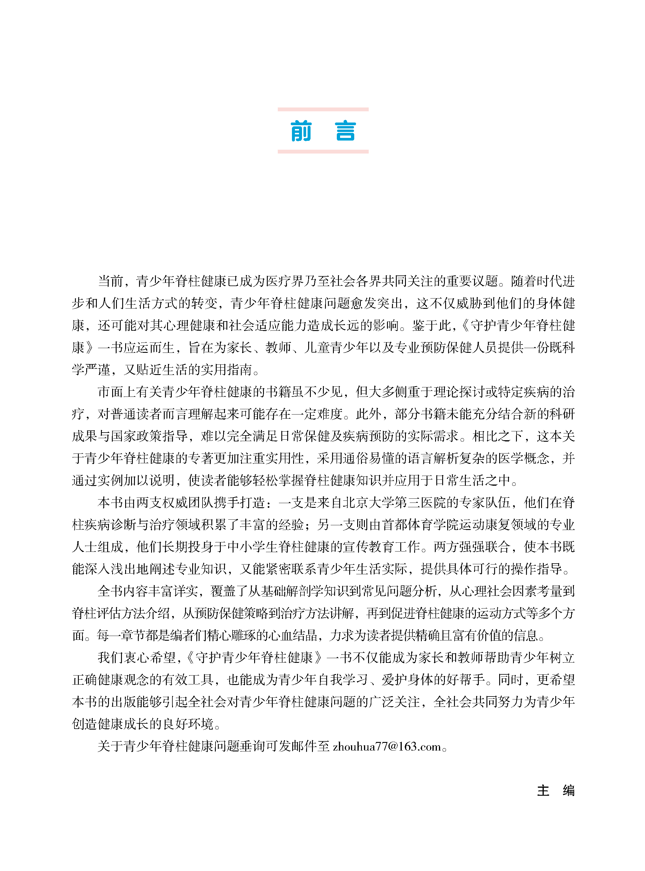 守护青少年脊柱健康 李危石 周华 刘华 王永强 主编 北医社