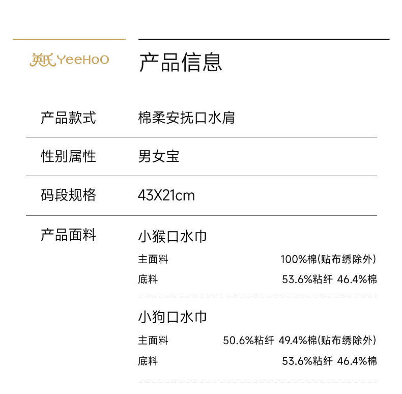 【精梳棉】英氏儿童口水巾四季可用宝宝围嘴纯棉卡通男童女童可爱口水巾