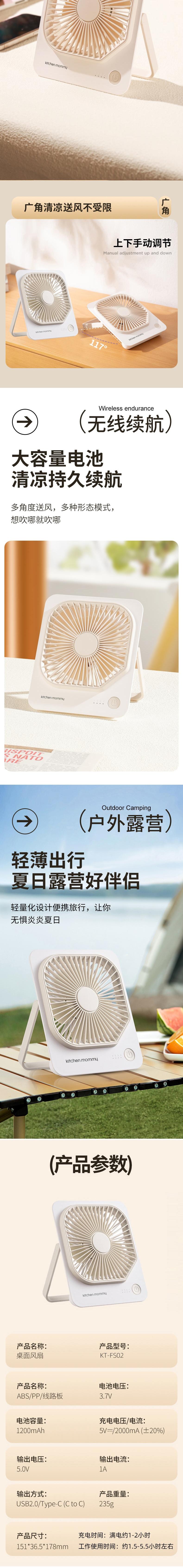 厨创妈咪 桌面风扇1200mAh KT-FS02