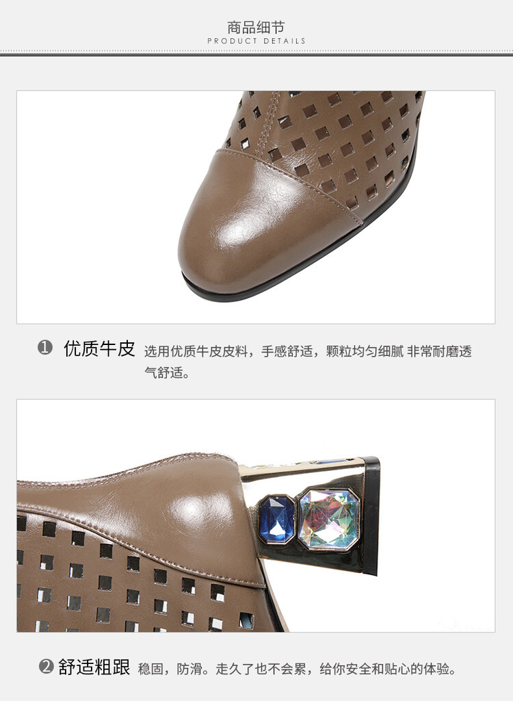 【预售5天】罗马凉靴女新款夏季短靴米白色镂空靴子粗跟软纯真皮透气洞洞网靴ALS&2412-2