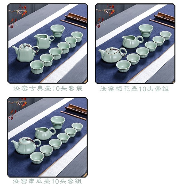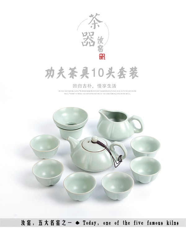 茶具套装 整套功夫汝窑茶具 汝瓷茶壶茶杯 南瓜壶 10头