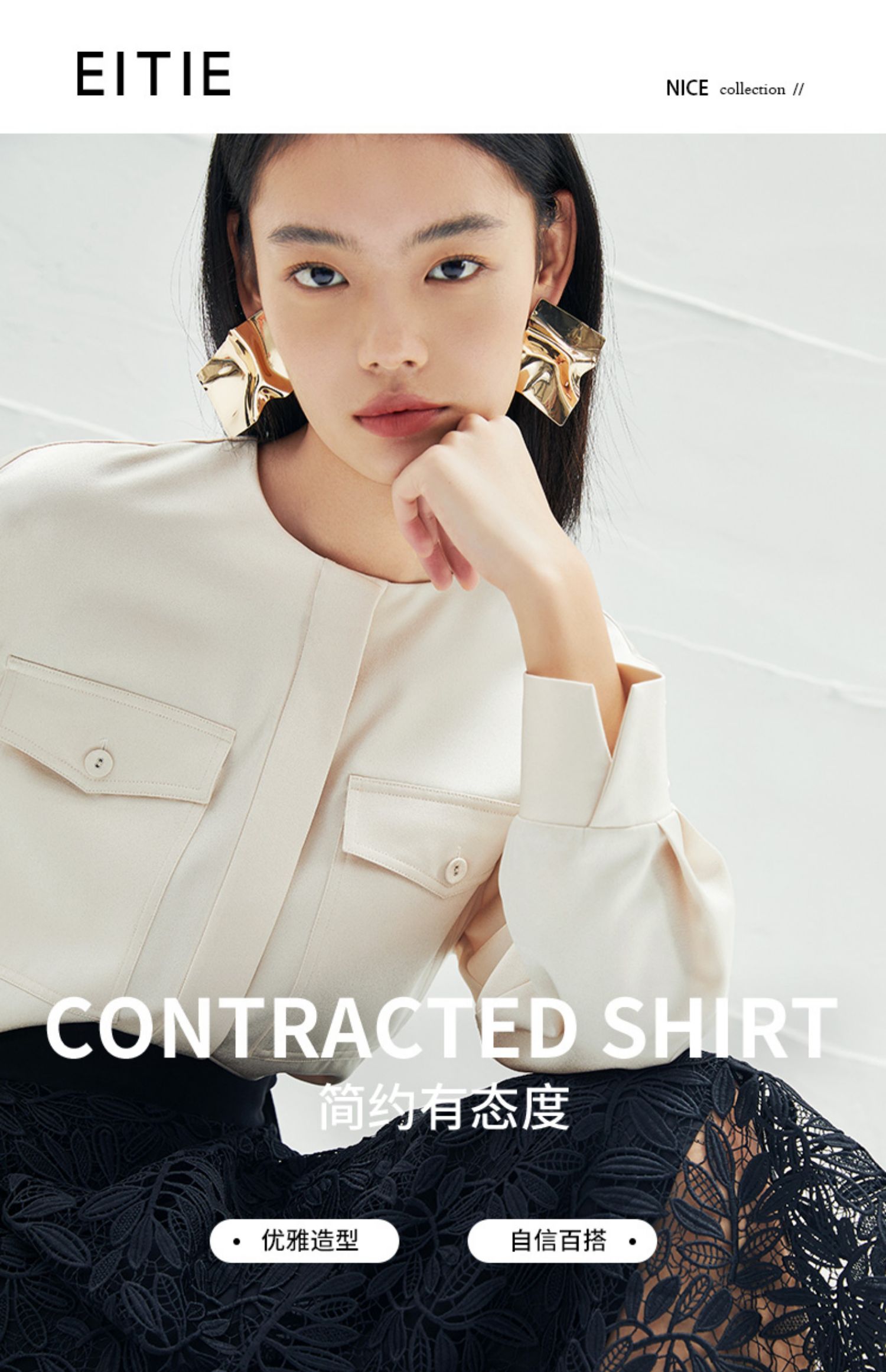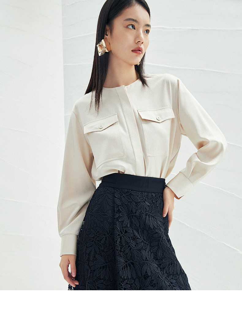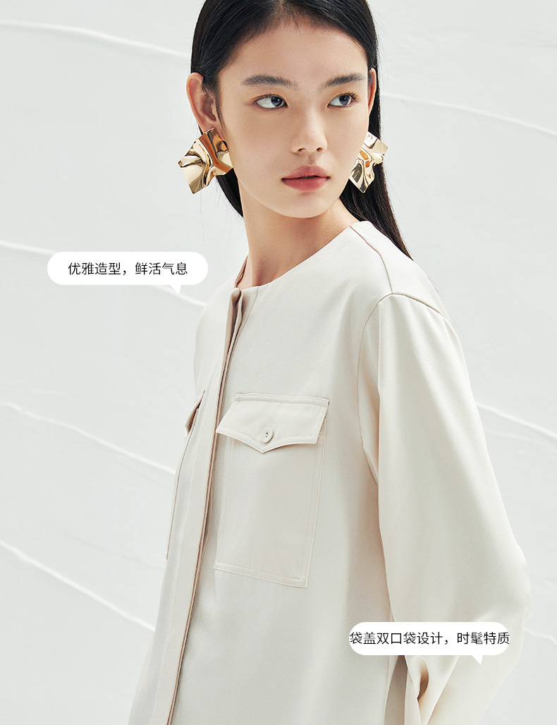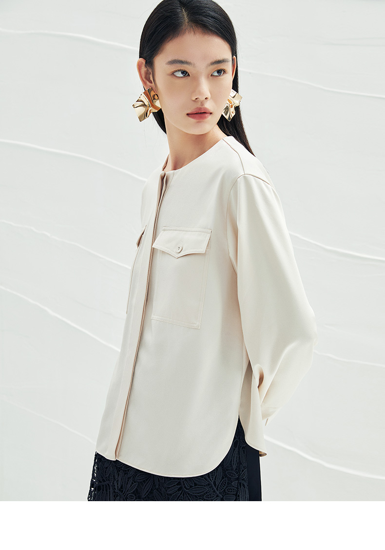 EITIE爱特爱春季新款圆领直筒衬衫时尚宽松通勤百搭显瘦上衣A2213903