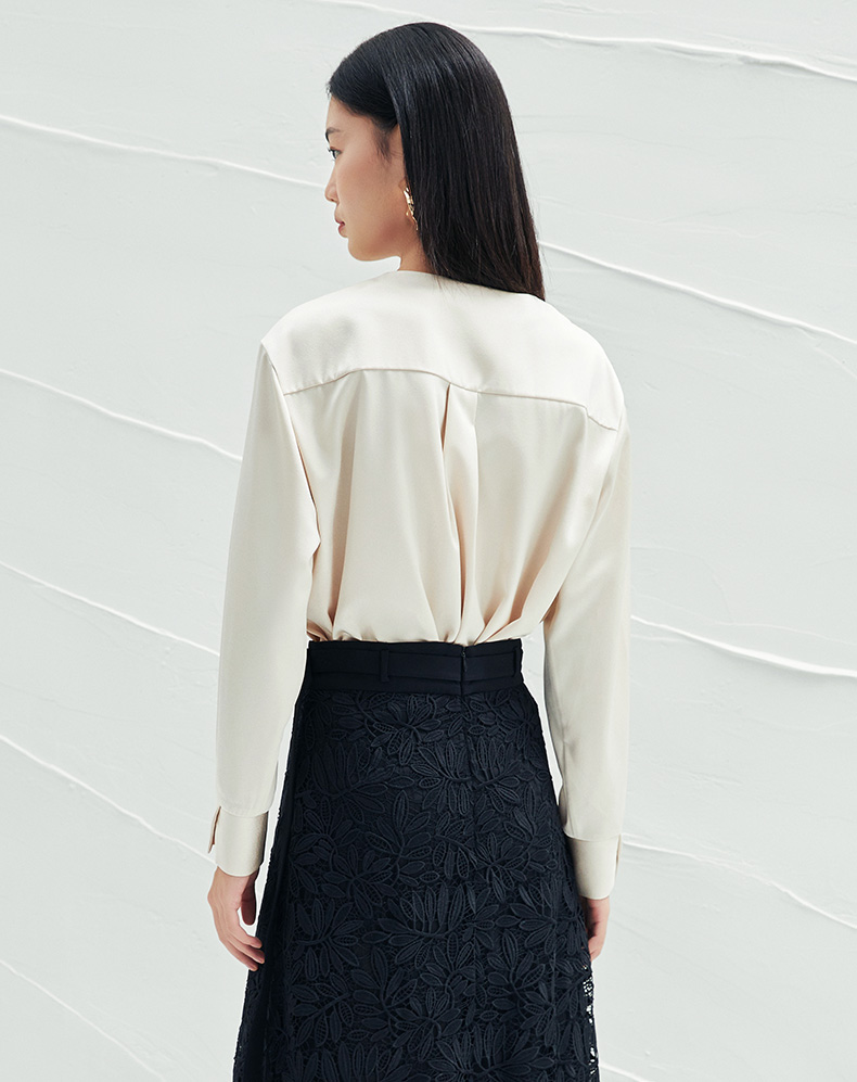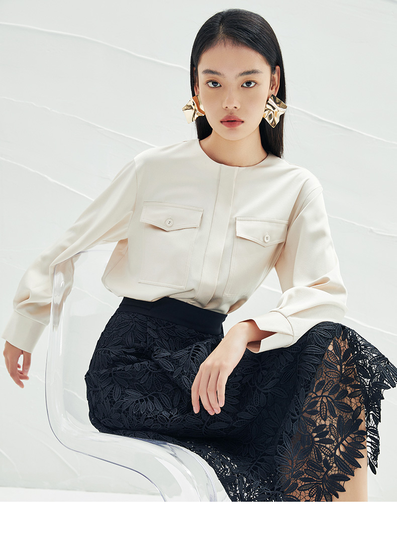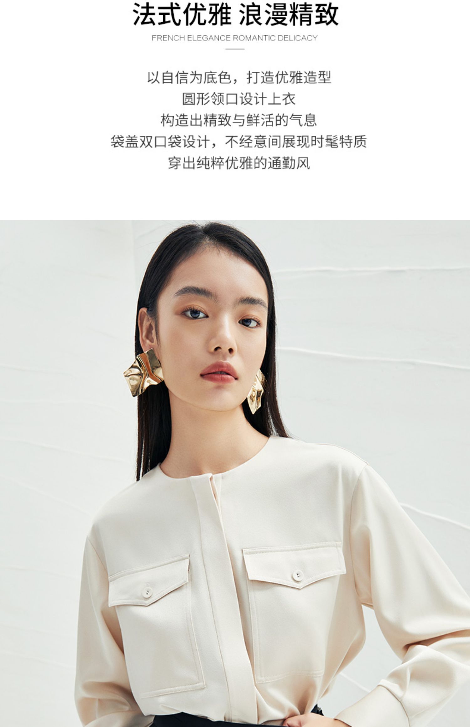 EITIE爱特爱春季新款圆领直筒衬衫时尚宽松通勤百搭显瘦上衣A2213903