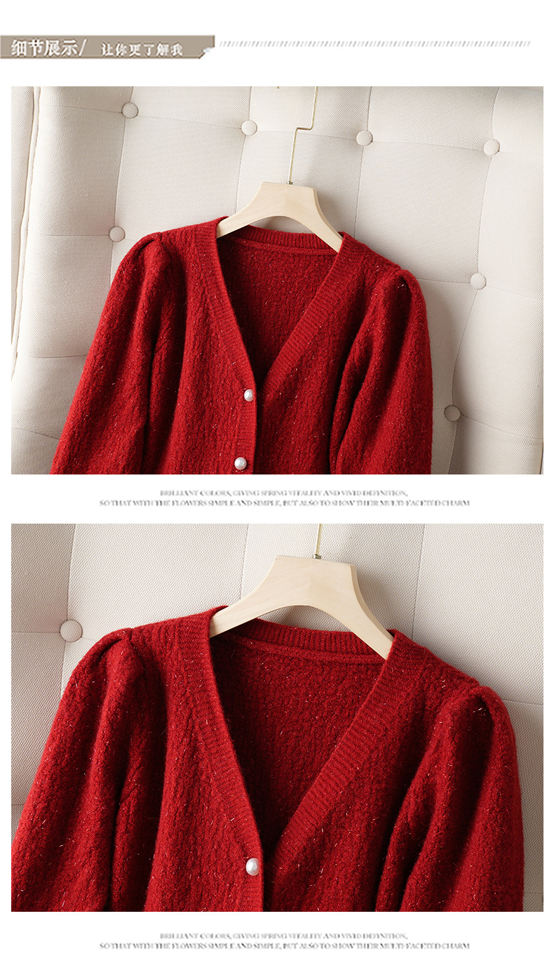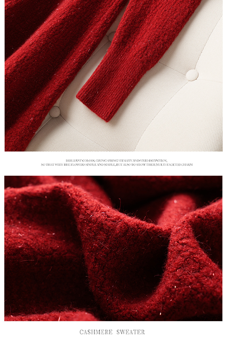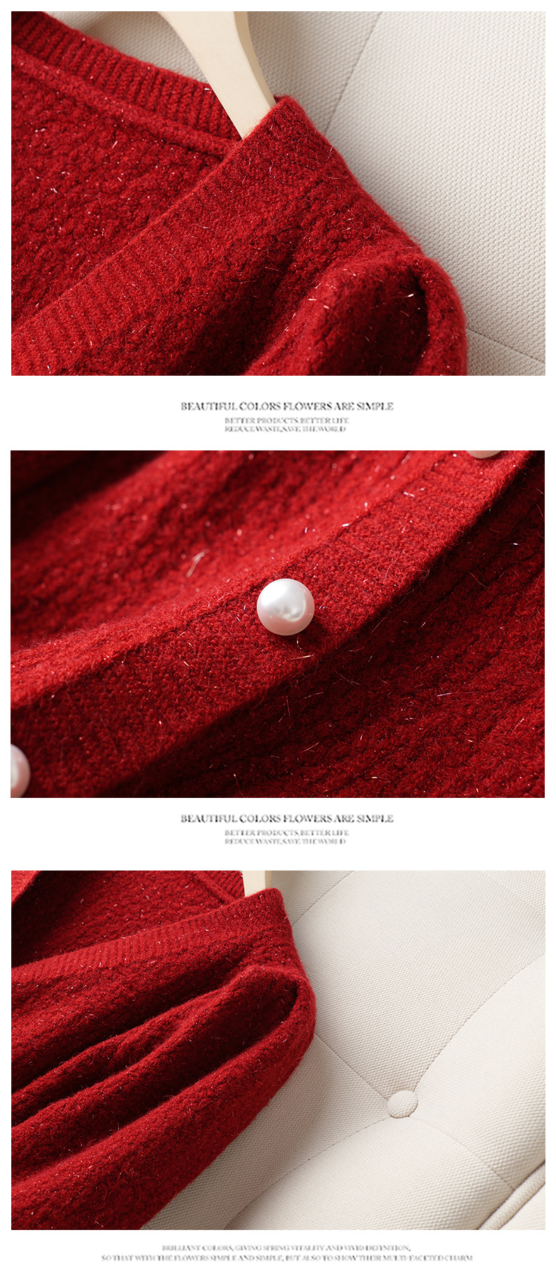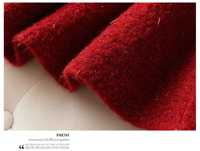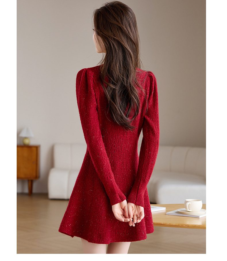 本命年红色金丝公主针织裙收腰单排扣毛衣裙JC398