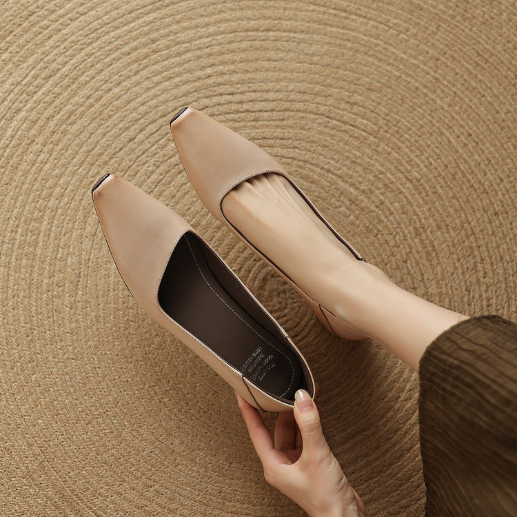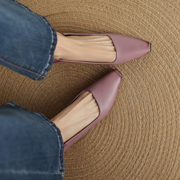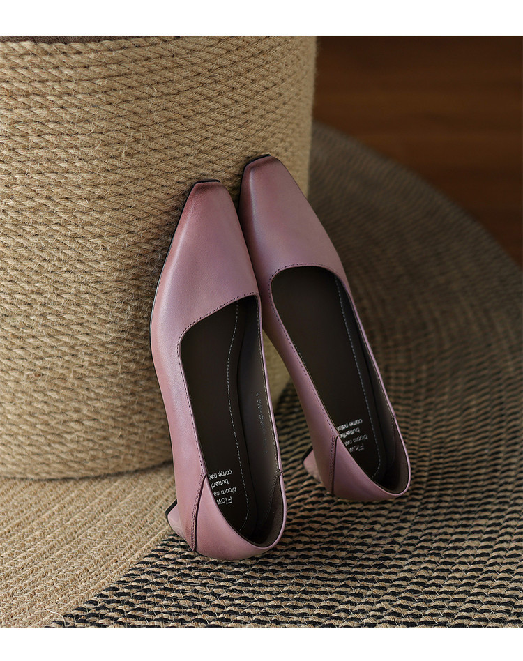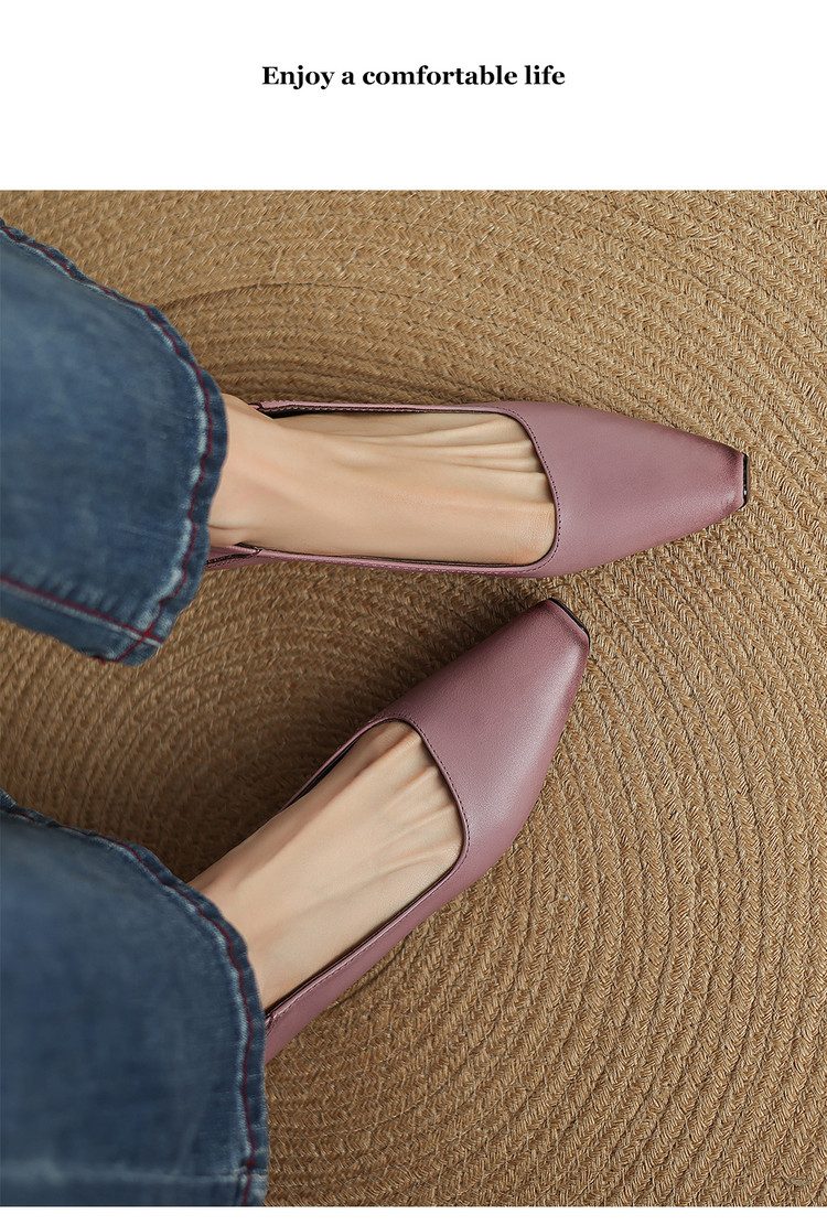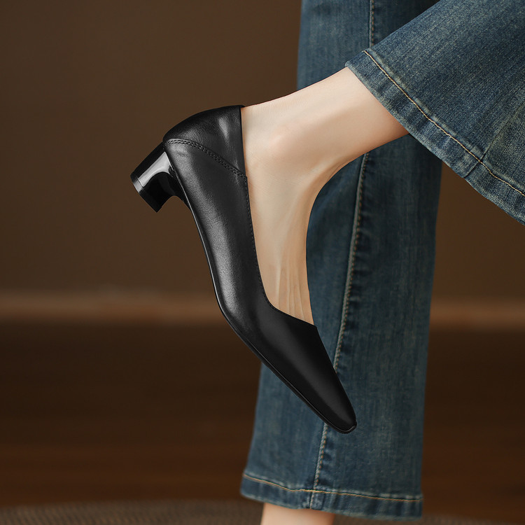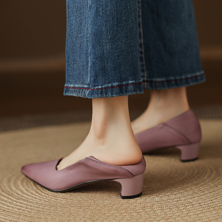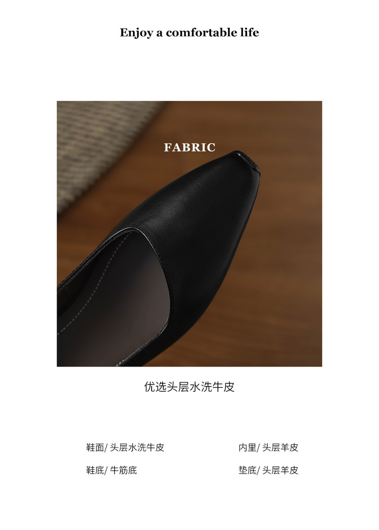 【预售5天】秋季新款两穿头层水洗牛皮后跟可踩软皮气质酒杯跟尖头通勤单鞋女MX&mx89907