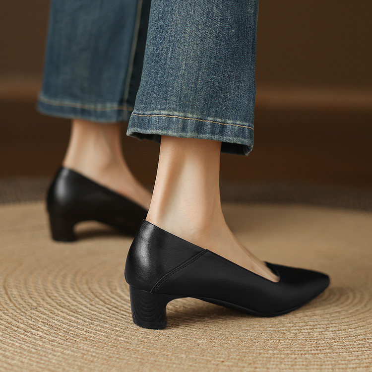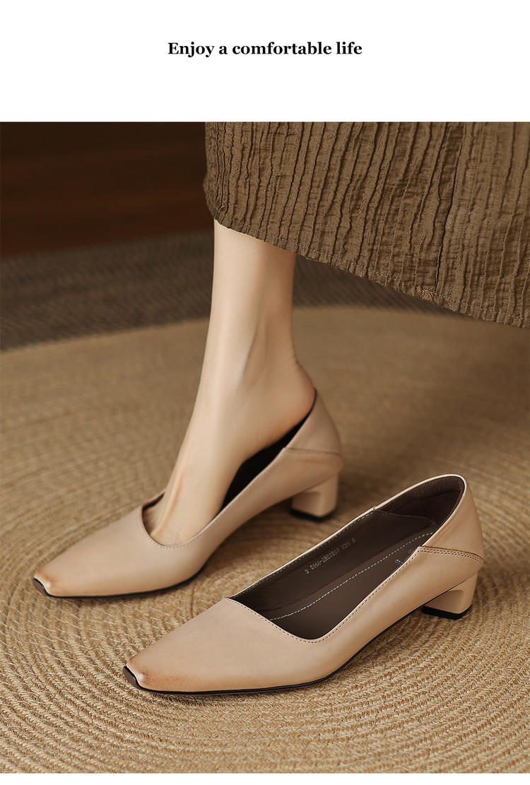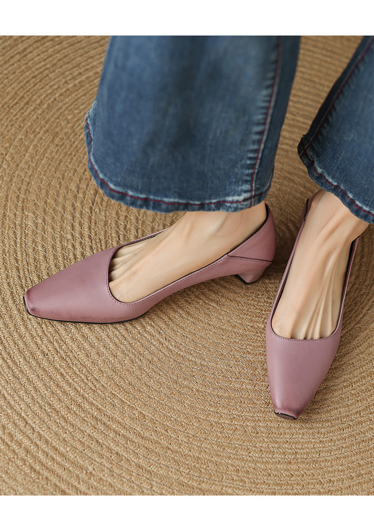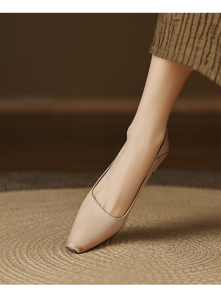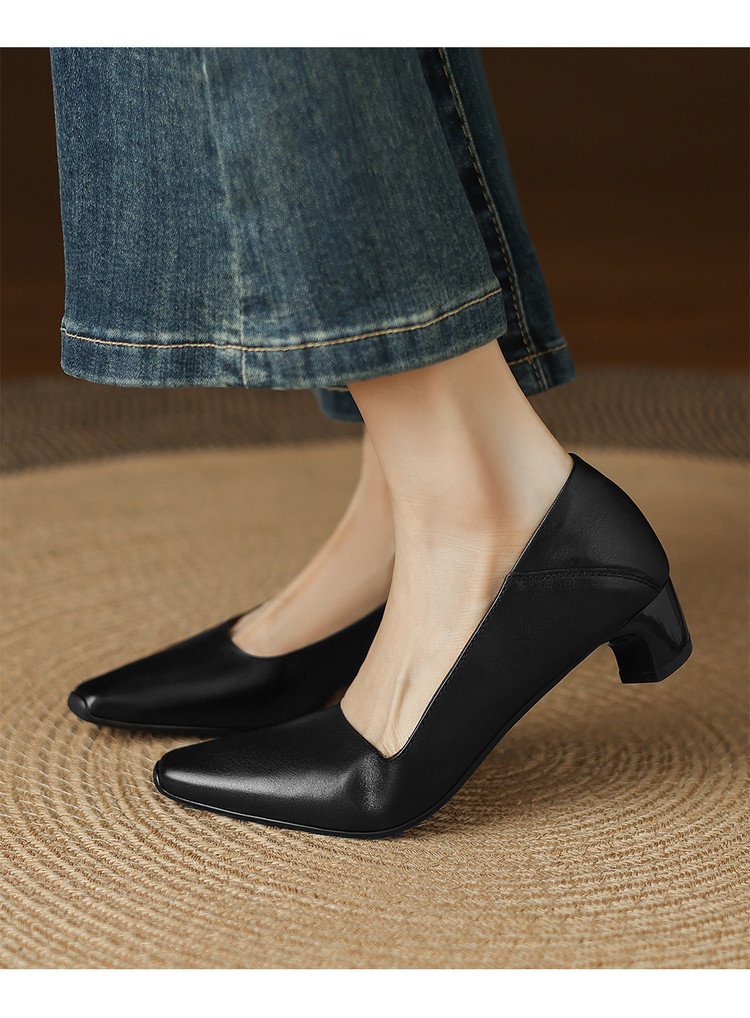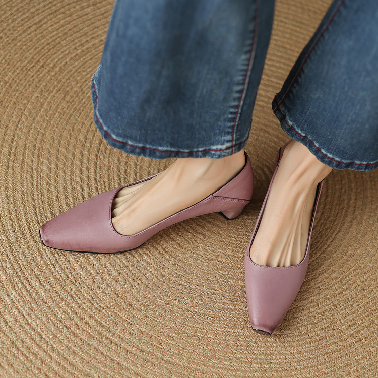 【预售5天】秋季新款两穿头层水洗牛皮后跟可踩软皮气质酒杯跟尖头通勤单鞋女MX&mx89907