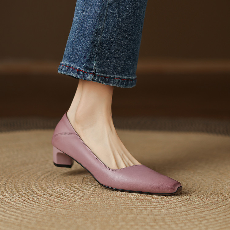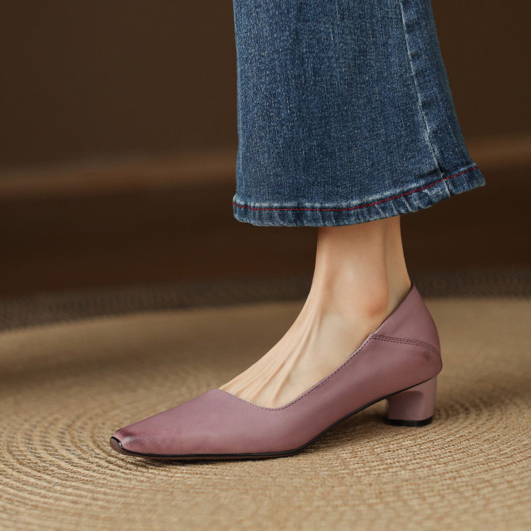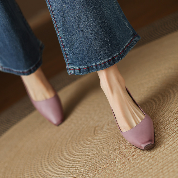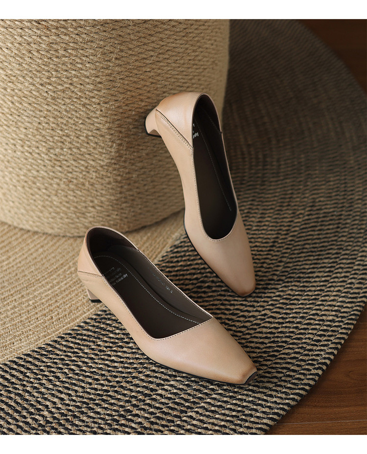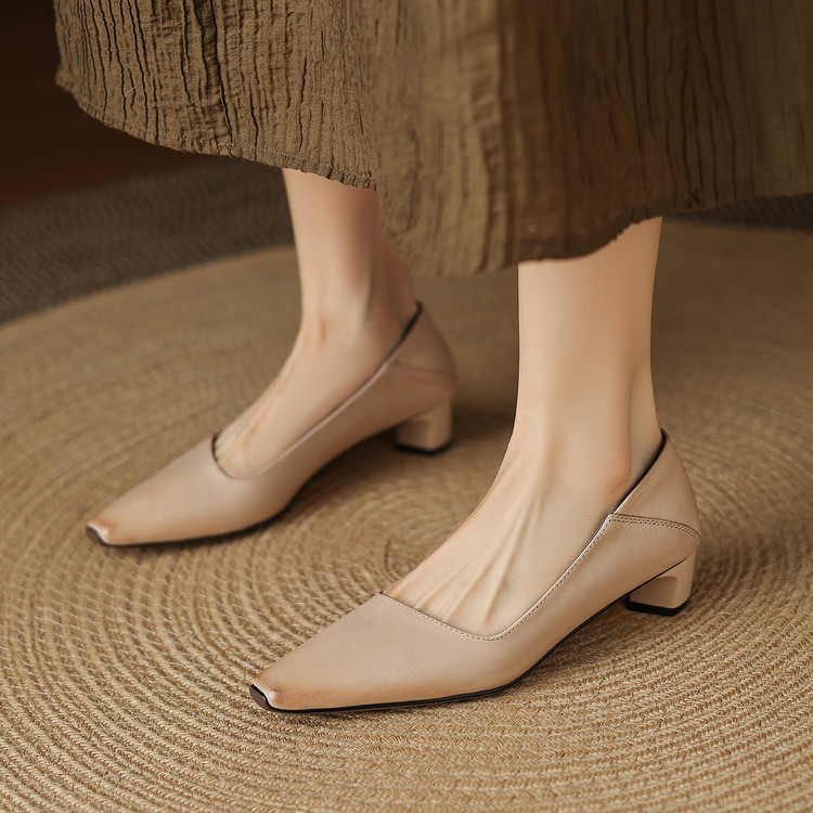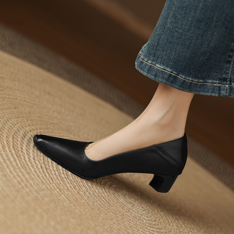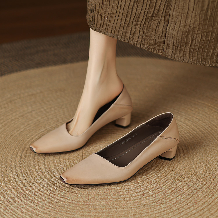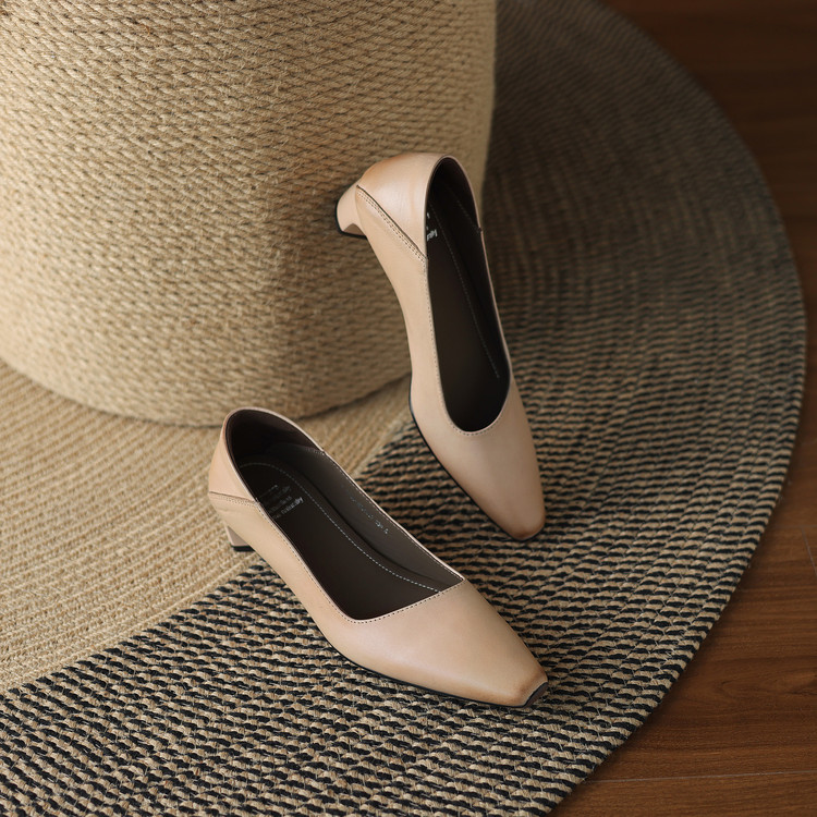 【预售5天】秋季新款两穿头层水洗牛皮后跟可踩软皮气质酒杯跟尖头通勤单鞋女MX&mx89907