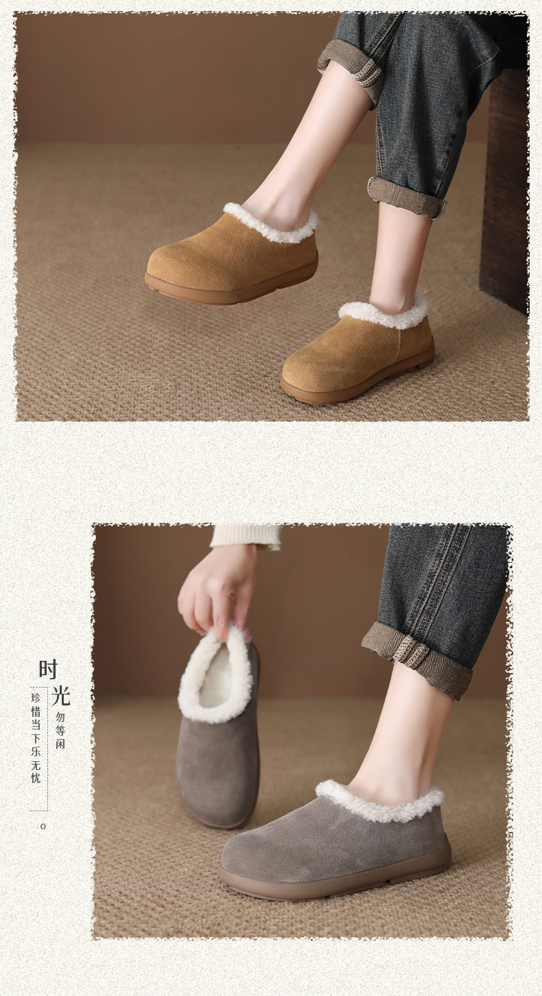 FR 85863真皮毛毛鞋保暖一脚蹬羊毛居家博肯半拖鞋棉鞋 商品图3